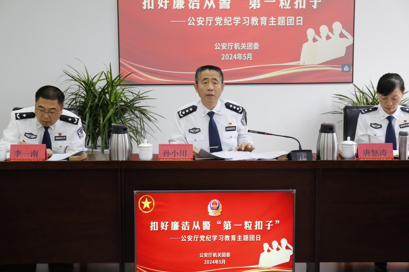 為認真貫徹落實習近平總書記關于黨紀學習教育和青年工作的重要指示精神,進一步引導公安廳機關團員青年堅持不懈用習近平新時代中國特色社會主義思想凝心鑄魂,5月11日,公安廳機關團委組織開展2024年扣好廉潔從警“第一??圩?rdquo;黨紀學習教育主題團日。廳黨委委員、機關黨委書記孫小川出席并講話,廳屬有關部門負責同志和廳機關團員青年代表60余人參加活動。