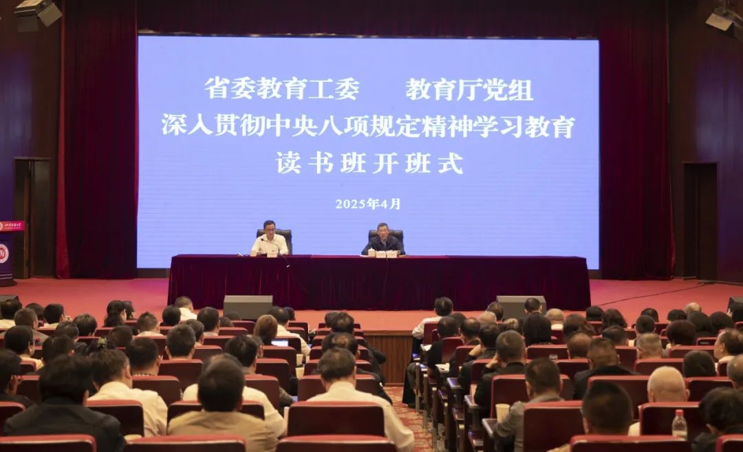 4月15日,省委教育工委、教育廳黨組舉辦深入貫徹中央八項規(guī)定精神學習教育專題讀書班。省委教育工委書記,教育廳黨組書記、廳長余孝其主持開班式并講話。