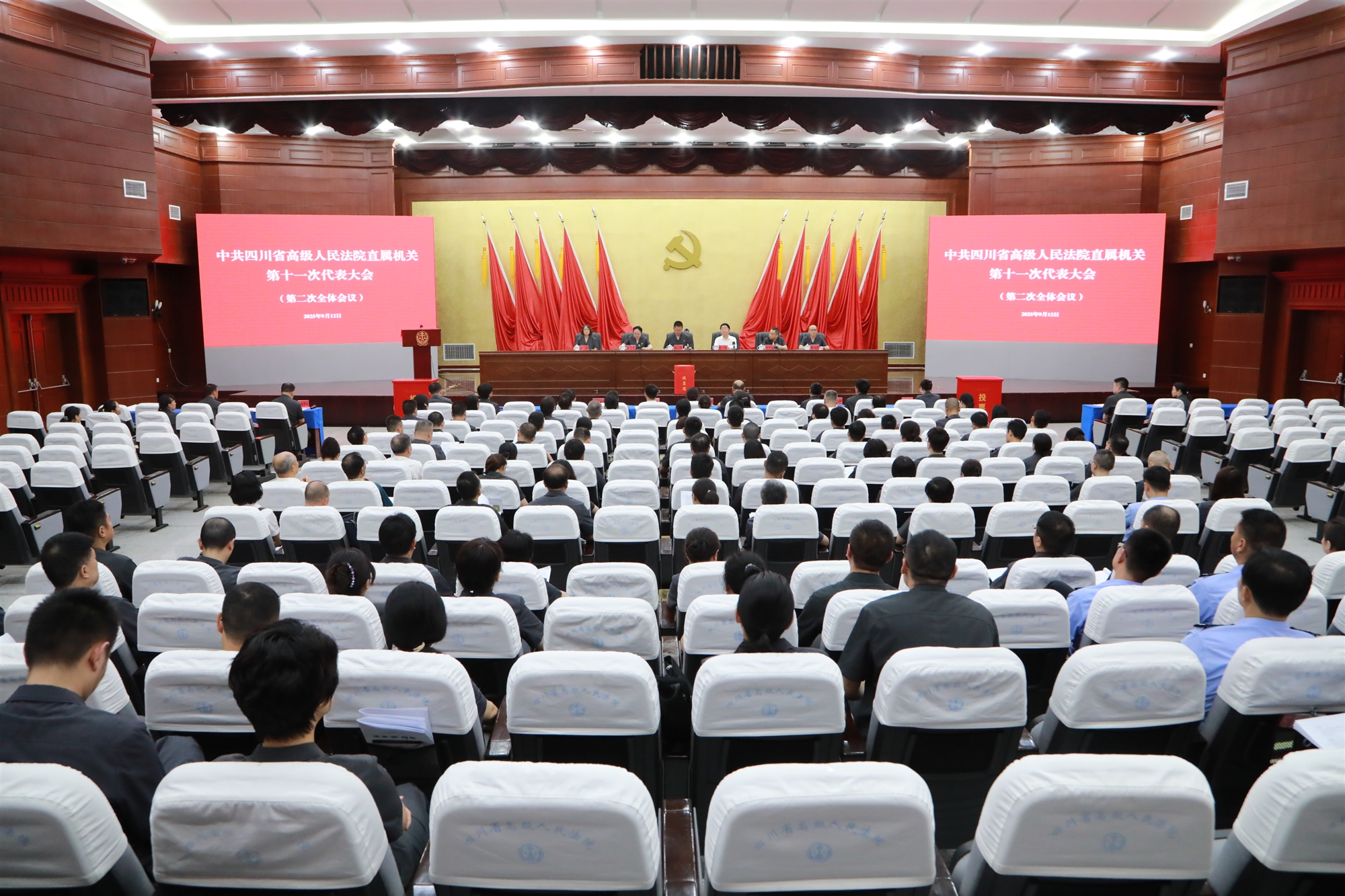 9 月 12 日,中國共產(chǎn)黨四川省高級人民法院直屬機關(guān)第十一次黨員代表大會召開。省法院黨組副書記、常務(wù)副院長秦海出席會議并講話,省委省直機關(guān)工委副書記賴俊到會指導(dǎo),省法院黨組成員、政治部主任、機關(guān)黨委書記謝慧主持大會。省法院機關(guān)及成鐵兩級法院各基層黨組織 126 名黨員代表參加會議。