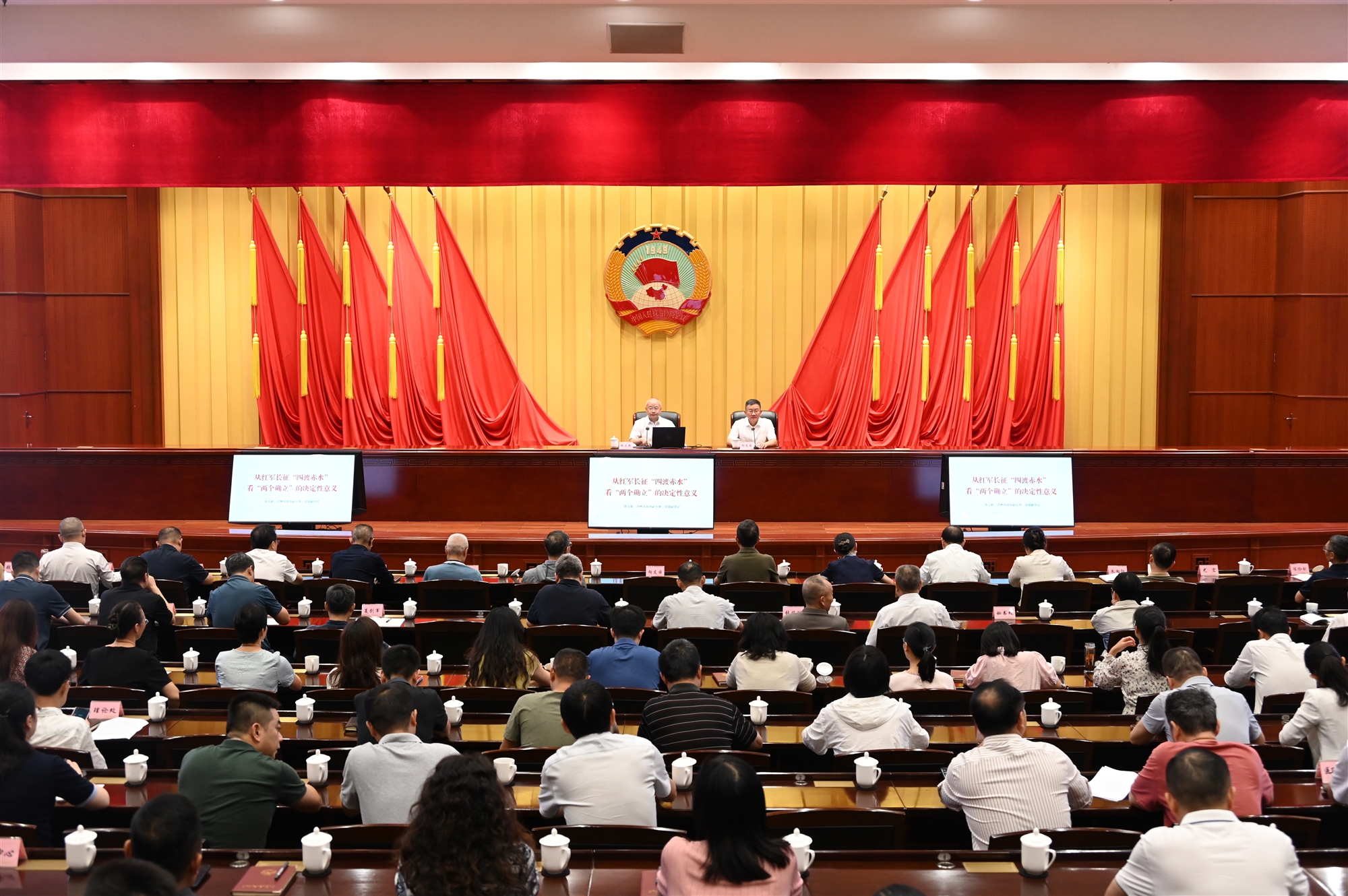 為紀念中國人民抗日戰爭暨世界反法西斯戰爭勝利80周年,近日,省政協辦公廳舉辦了“四渡赤水”黨史教育專題講座、參觀“偉大勝利 川渝貢獻——紀念中國人民抗日戰爭暨世界反法西斯戰爭勝利80周年專題展”、觀看抗戰題材影視作品系列活動,引導機關干部職工銘記歷史、緬懷先烈,賡續紅色血脈、汲取奮進力量。