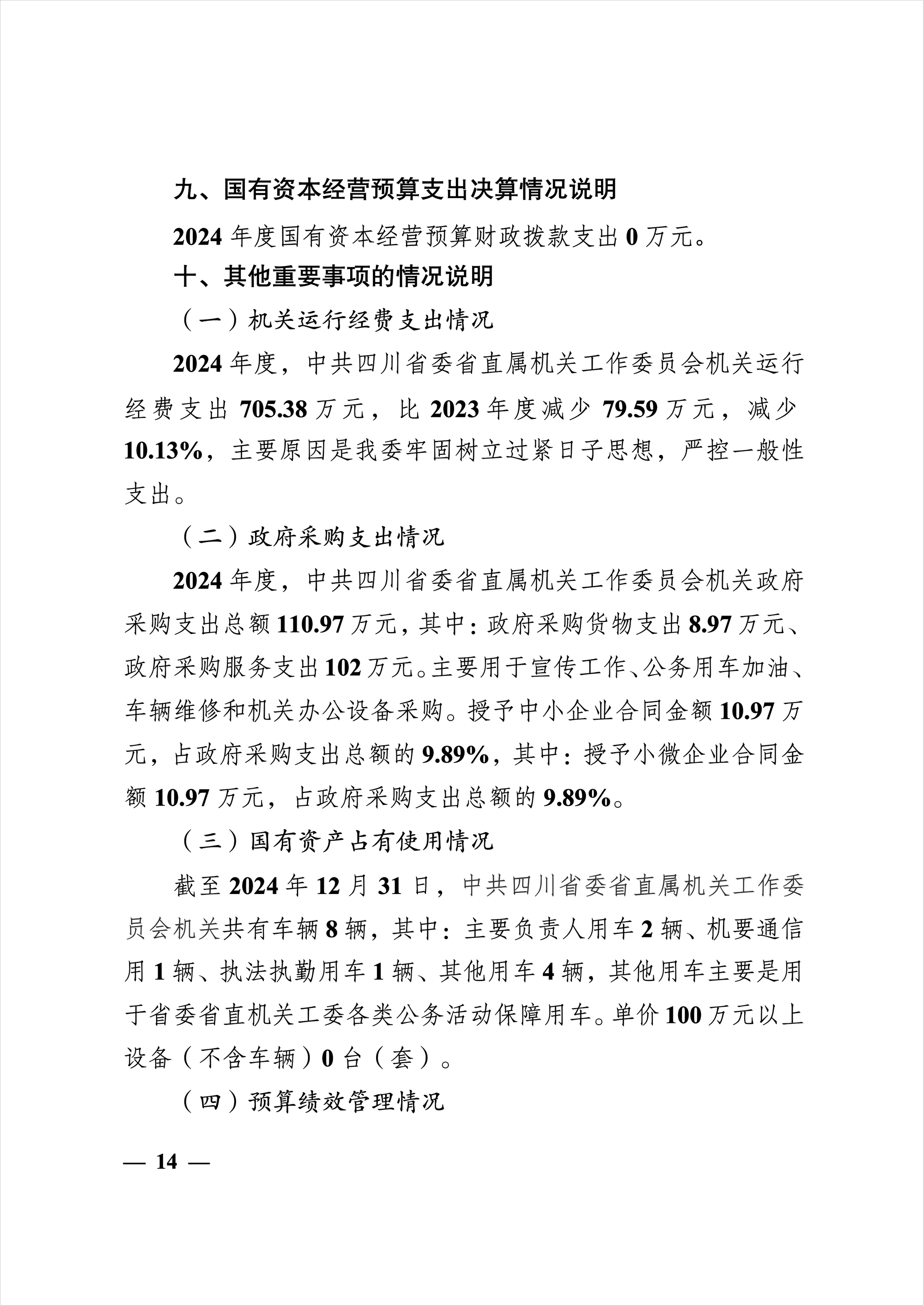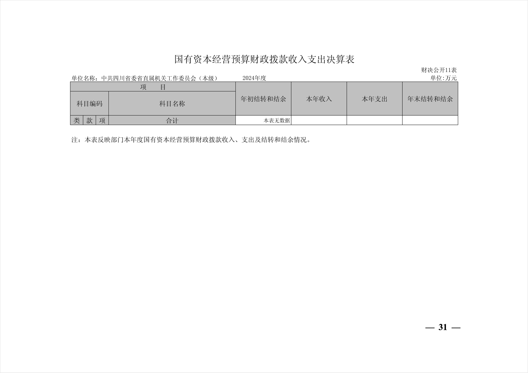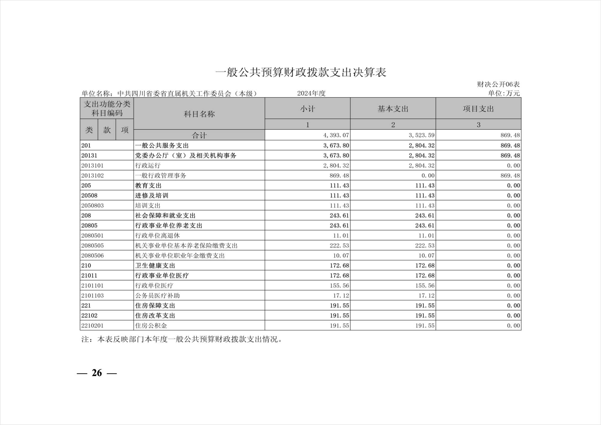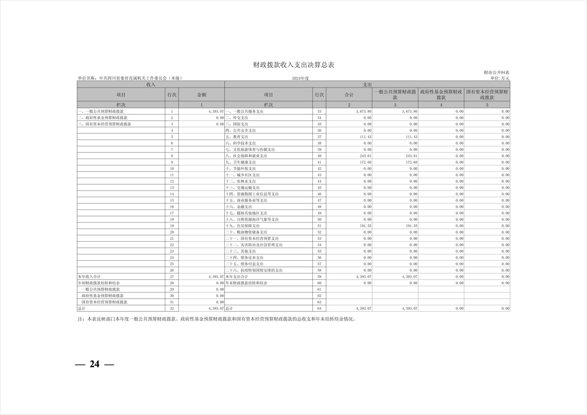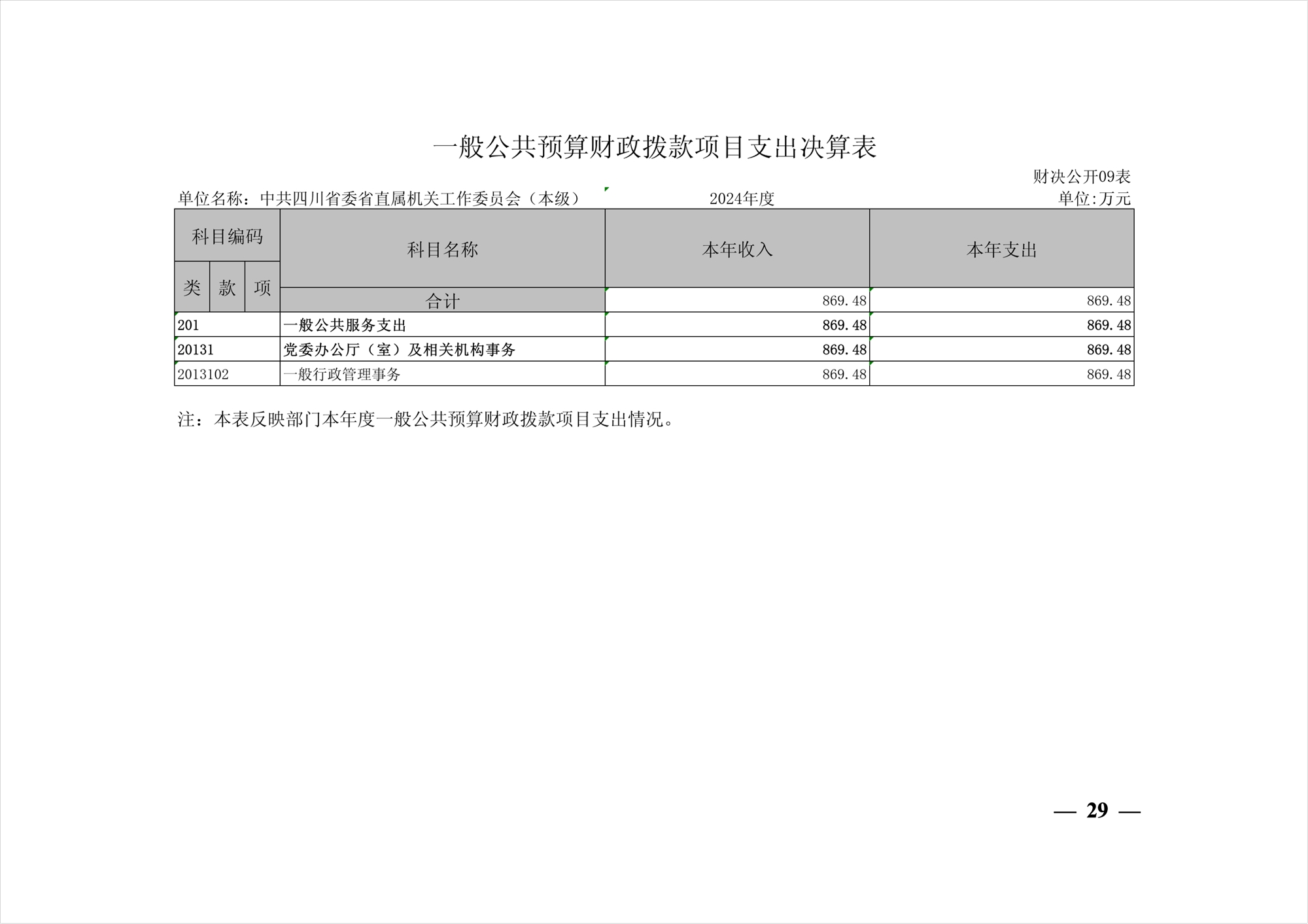 2024年度中共四川省委省直屬機(jī)關(guān)工作委員會機(jī)關(guān)單位決算