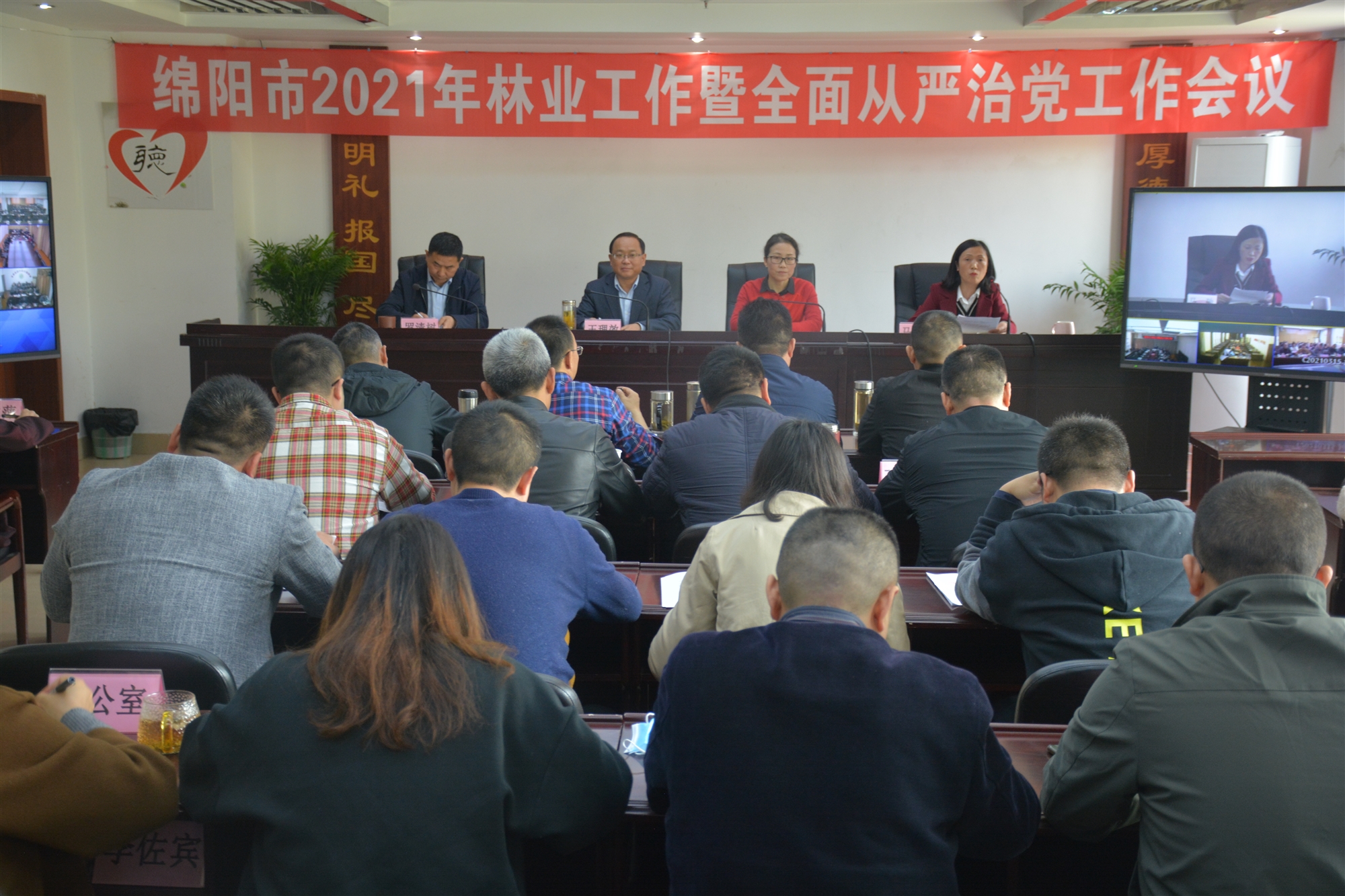 3月15日,綿陽市2021年林業工作全面從嚴治黨工作會議以視頻會議形式召開。會議總結了2020年全市林業工作,安排部署了2021年度林業重點工作及全面從嚴治黨工作。綿陽市林業局黨組書記、局長王理效,駐局紀檢監察組組長李躍出席會議并講話。市林業局黨組成員、副局長羅清樹主持會議。