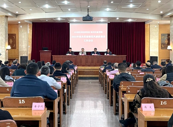 3月30日上午,省委黨校(四川行政學院)召開2021年機關黨建暨黨風廉政建設工作會議,傳達學習中央、省委近期重要會議精神,總結2020年校(院)機關黨建暨黨風廉政建設工作,部署今年工作任務。常務副校(院)長李新出席會議并講話。省紀委監委駐省委組織部紀檢監察組組長郭東軍出席會議,通報2021年駐部紀檢監察組重點工作,對校(院)新任職處級干部開展集體廉政談話。副校(院)長李章忠主持會議。