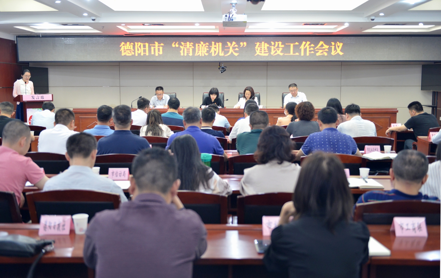 最后,會議還傳達了“清廉德陽”聯席會議精神,提出要圍繞“五清”目標精準發力,在統籌推進“清廉機關”建設上展現新作為;在推動工作目標落實上彰顯新擔當;在著力構建機關“不敢腐不想腐不能腐”體制機制上闖出新路子;在夯實清廉陣地建設上邁出新步伐。“清廉機關”建設領導小組成員,市級各部門“清廉機關”建設分管負責同志共80余人參加了會議。