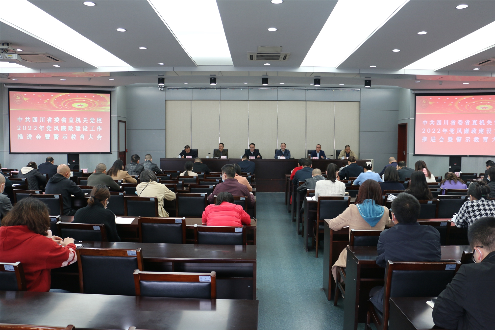 11月18日,省委省直機(jī)關(guān)黨校召開(kāi)黨風(fēng)廉政建設(shè)工作推進(jìn)會(huì)暨警示教育大會(huì),傳達(dá)學(xué)習(xí)省委省政府《關(guān)于推進(jìn)2022年全面從嚴(yán)治黨、黨風(fēng)廉政建設(shè)和反腐敗工作的意見(jiàn)》和省直機(jī)關(guān)黨風(fēng)廉政建設(shè)工作推進(jìn)會(huì)暨警示教育大會(huì)精神。在校校領(lǐng)導(dǎo)及全體教職工參會(huì)。