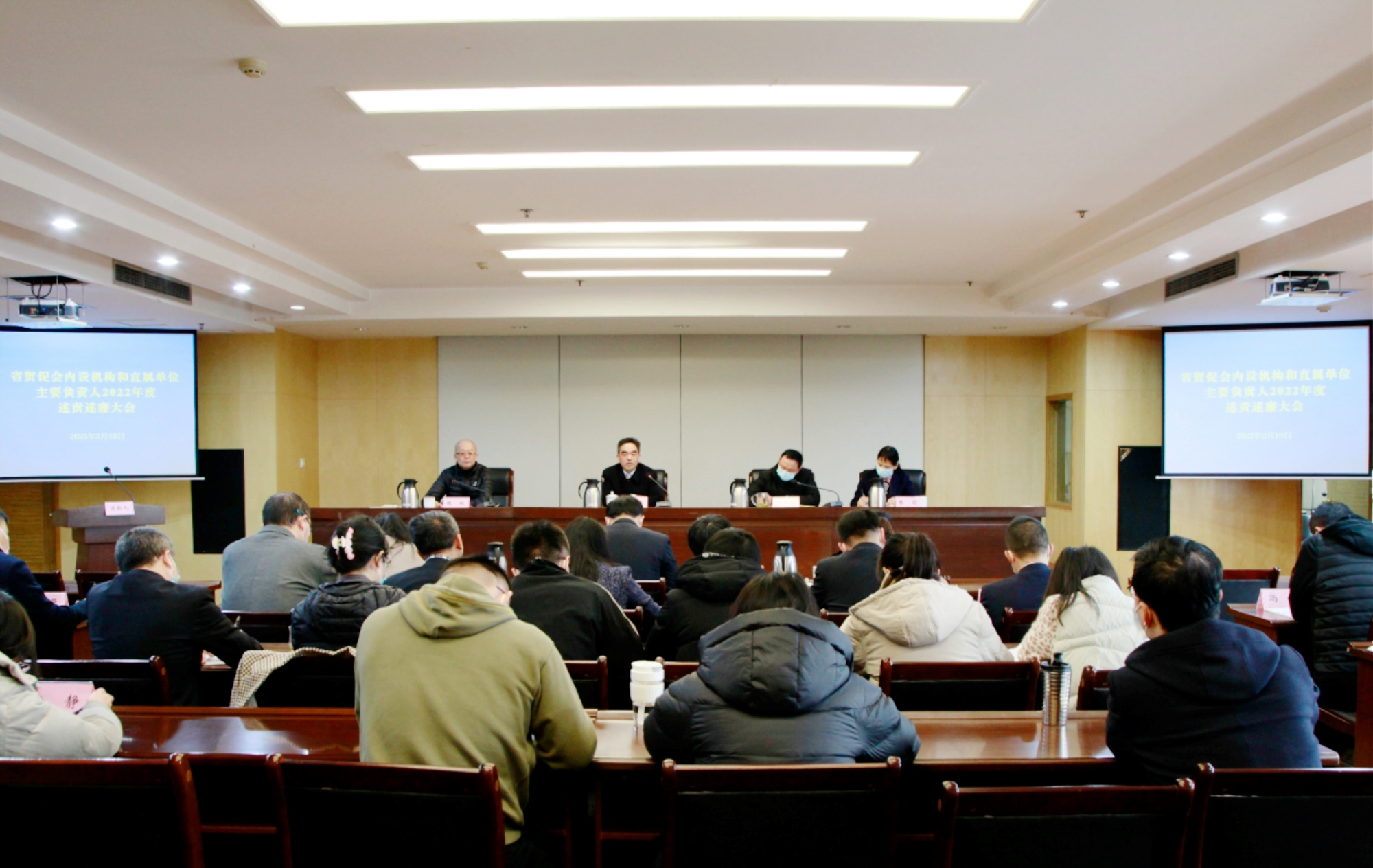 2023年2月16日,省貿促會召開2022年度內設機構和直屬單位主要負責人述責述廉會議。省紀委監委駐省委外辦紀檢監察組組長肖咸君出席會議并講話,省紀委監委駐省委外辦紀檢監察組副組長胡殊主持會議。
