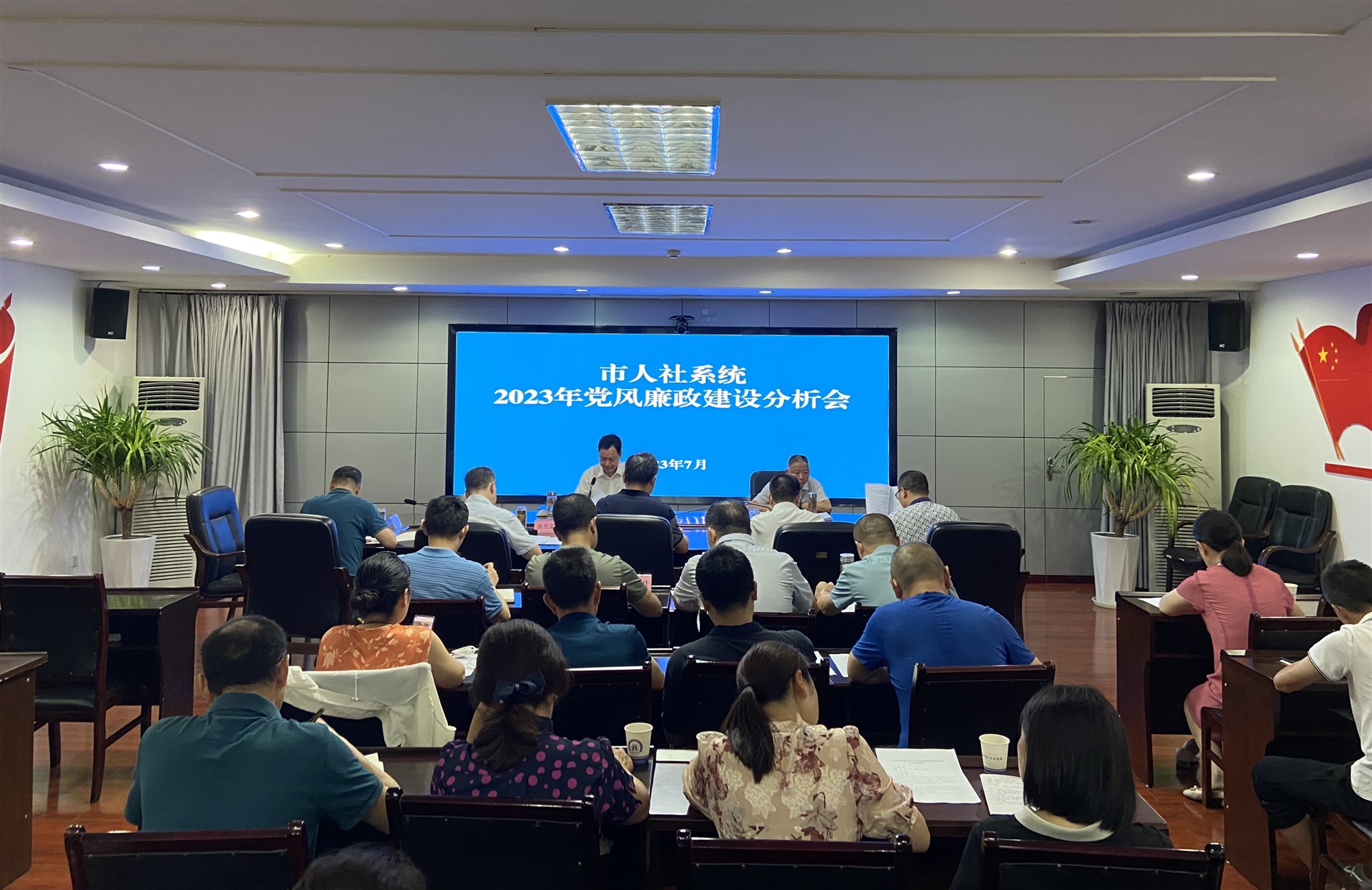 7月11日上午,資陽市人社系統召開2023年黨風廉政建設分析會。市人力資源社會保障局黨組成員、機關科級以上干部、直屬單位中層以上干部參加會議,市紀委監委派駐市委組織部紀檢監察組有關領導到會指導。