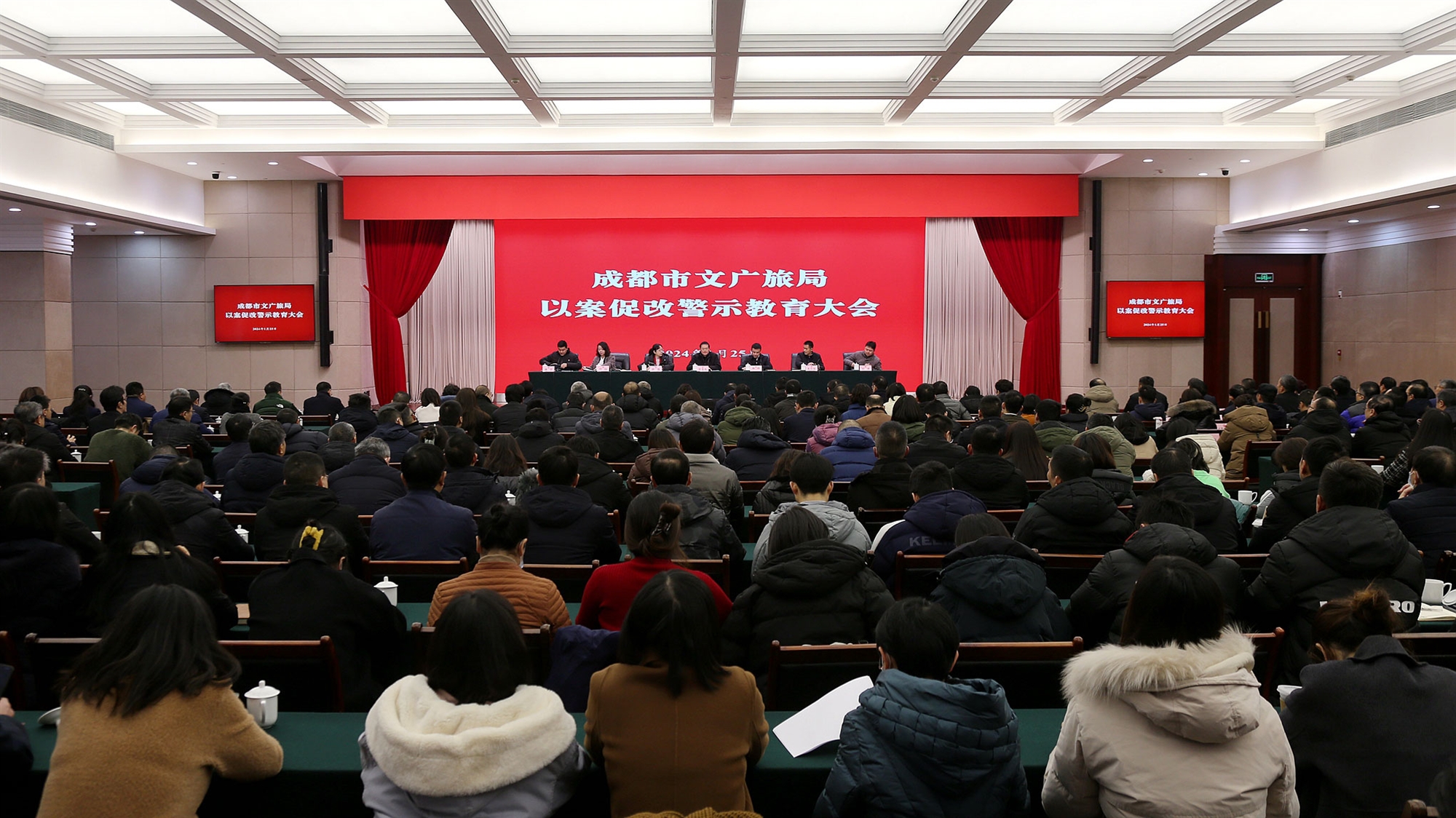 近日,成都市文廣旅局召開以案促改警示教育大會。市文廣旅局領導班子成員、機關全體干部,直屬事業單位領導班子成員和中層正職代表共計300余人參加大會,同上警示教育課。