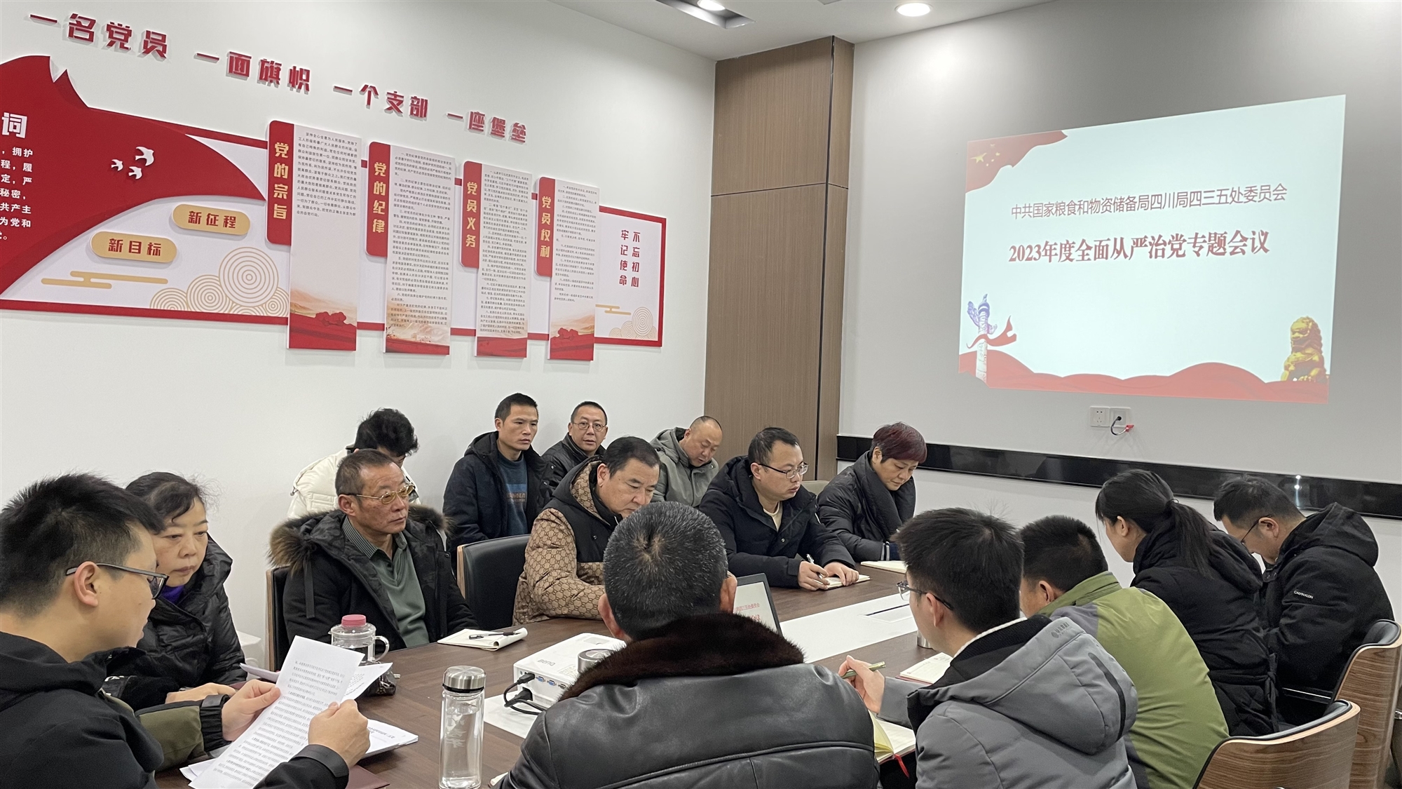 近日,糧儲四川局四三五處黨委組織召開全面從嚴(yán)治黨專題會,分析總結(jié)2023年工作,研究部署2024年全面從嚴(yán)治黨各項工作,全體黨員參加會議。