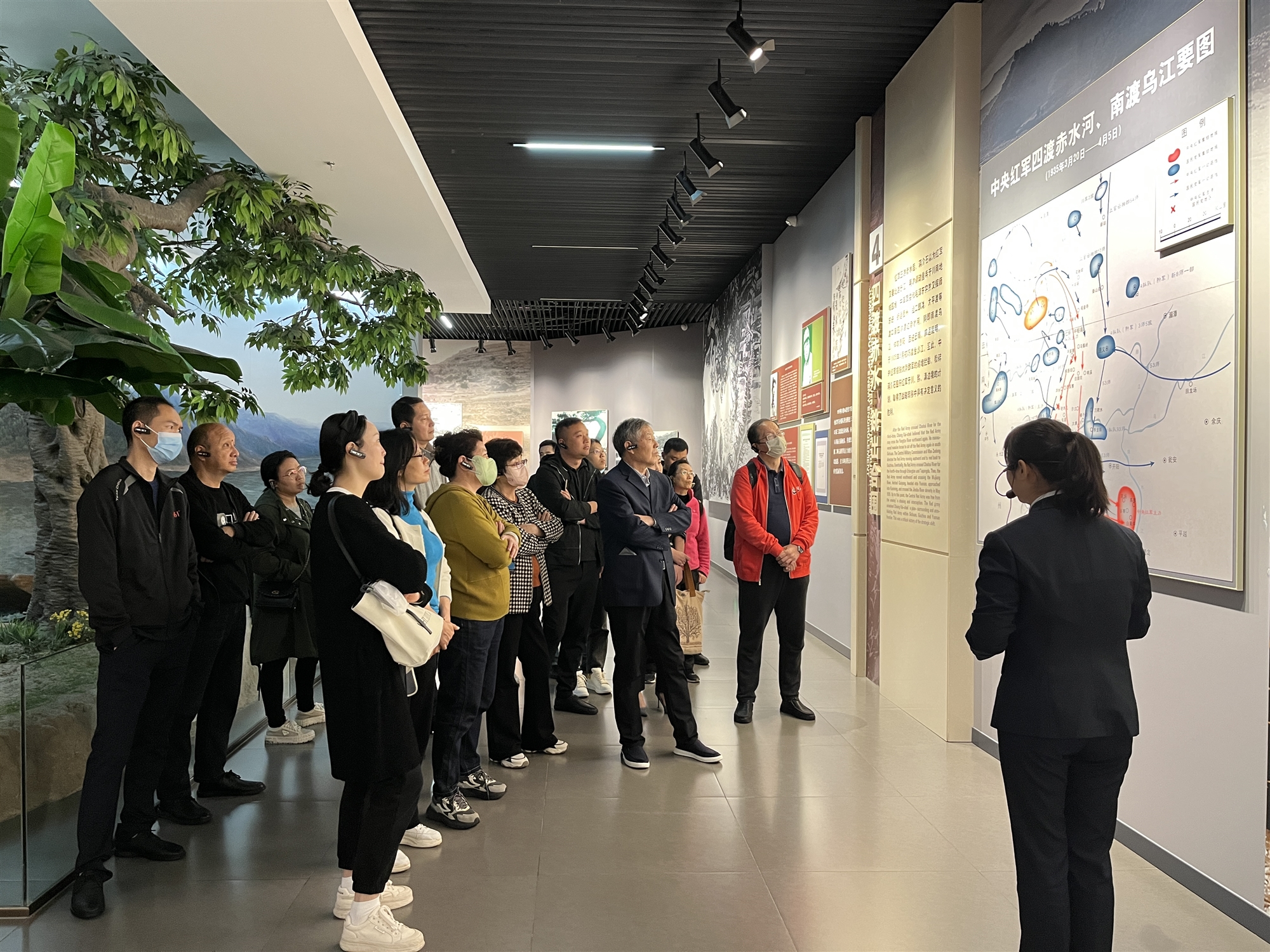 活動(dòng)首先組織參觀了四渡赤水紀(jì)念館,四渡赤水戰(zhàn)役是世界戰(zhàn)爭(zhēng)史上以弱勝?gòu)?qiáng)、變被動(dòng)為主動(dòng)的運(yùn)動(dòng)戰(zhàn)典范。綜合運(yùn)用雕塑、油畫、圖片、文字、實(shí)物相結(jié)合的方式,采用聲、光、電等技術(shù)手段,再現(xiàn)了毛澤東及其他革命先輩率領(lǐng)中央紅軍3萬(wàn)余人四次飛渡赤水河,擺脫國(guó)民黨40萬(wàn)重兵圍追堵截,實(shí)現(xiàn)戰(zhàn)略轉(zhuǎn)移偉大勝利的歷史畫面。一件件實(shí)物、一張張照片、一幅幅影像,再現(xiàn)了黨領(lǐng)導(dǎo)人民開展革命斗爭(zhēng)的光輝歷程,記錄下革命先烈可歌可泣的感人事跡。