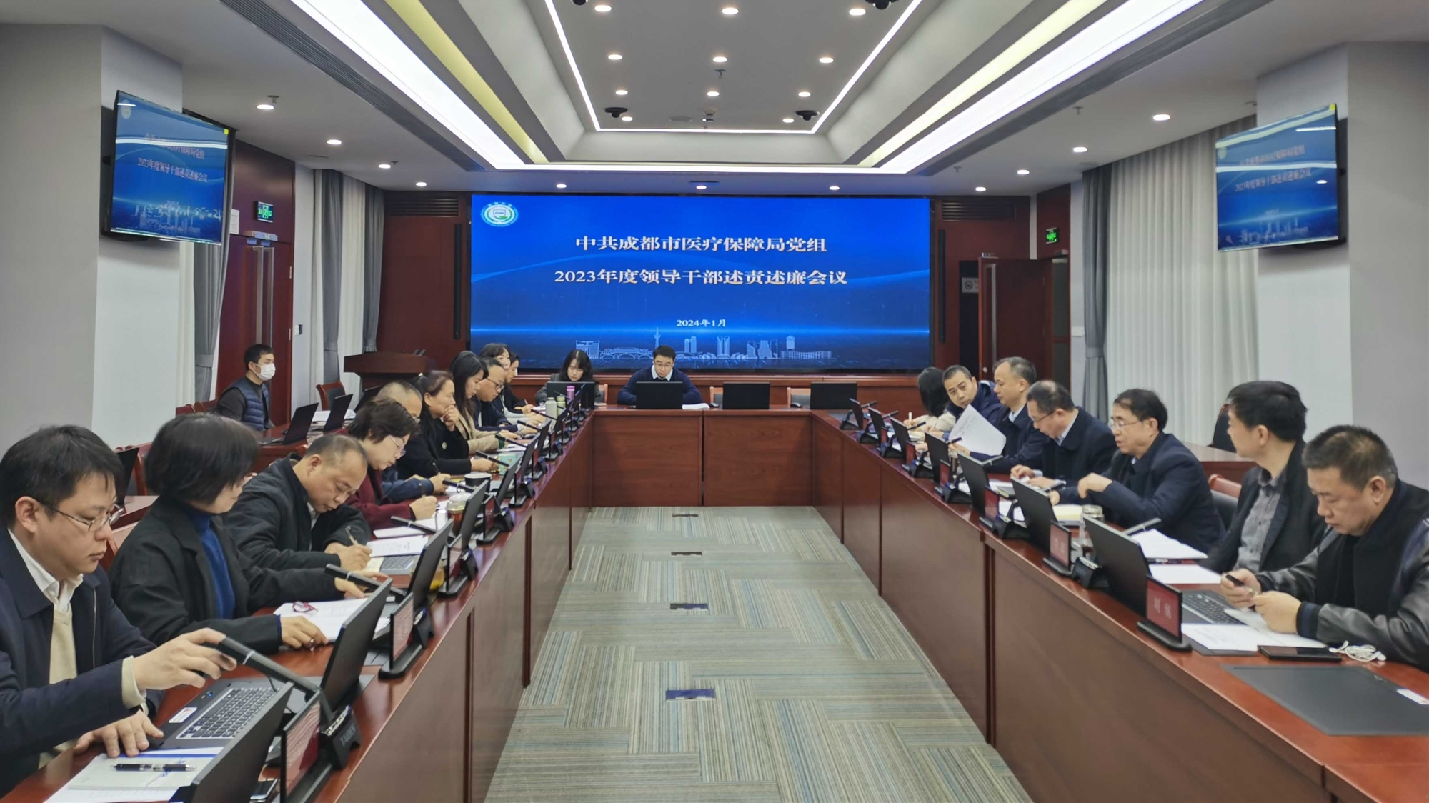 近日,成都市醫(yī)保局召開(kāi)2023年度領(lǐng)導(dǎo)干部述責(zé)述廉會(huì)議,局黨組班子成員、機(jī)關(guān)各處室負(fù)責(zé)人、市醫(yī)保事務(wù)中心黨委專職副書(shū)記、市醫(yī)保信息中心負(fù)責(zé)人以及局系統(tǒng)干部職工代表、退休老黨員代表,第三方機(jī)構(gòu)代表和服務(wù)對(duì)象代表參加會(huì)議。市紀(jì)委監(jiān)委駐市衛(wèi)健委紀(jì)檢監(jiān)察組到會(huì)指導(dǎo)。