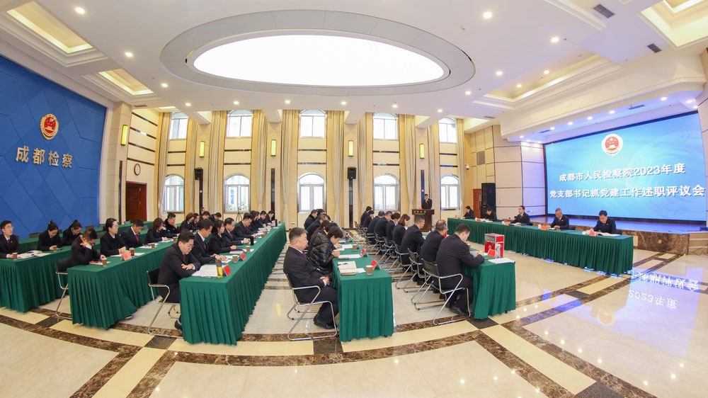 1月18日,成都市檢察院召開2023年度黨支部書記抓黨建工作述職評議會。市檢察院黨組成員、機關黨委書記梁勇主持會議并進行點評講話。