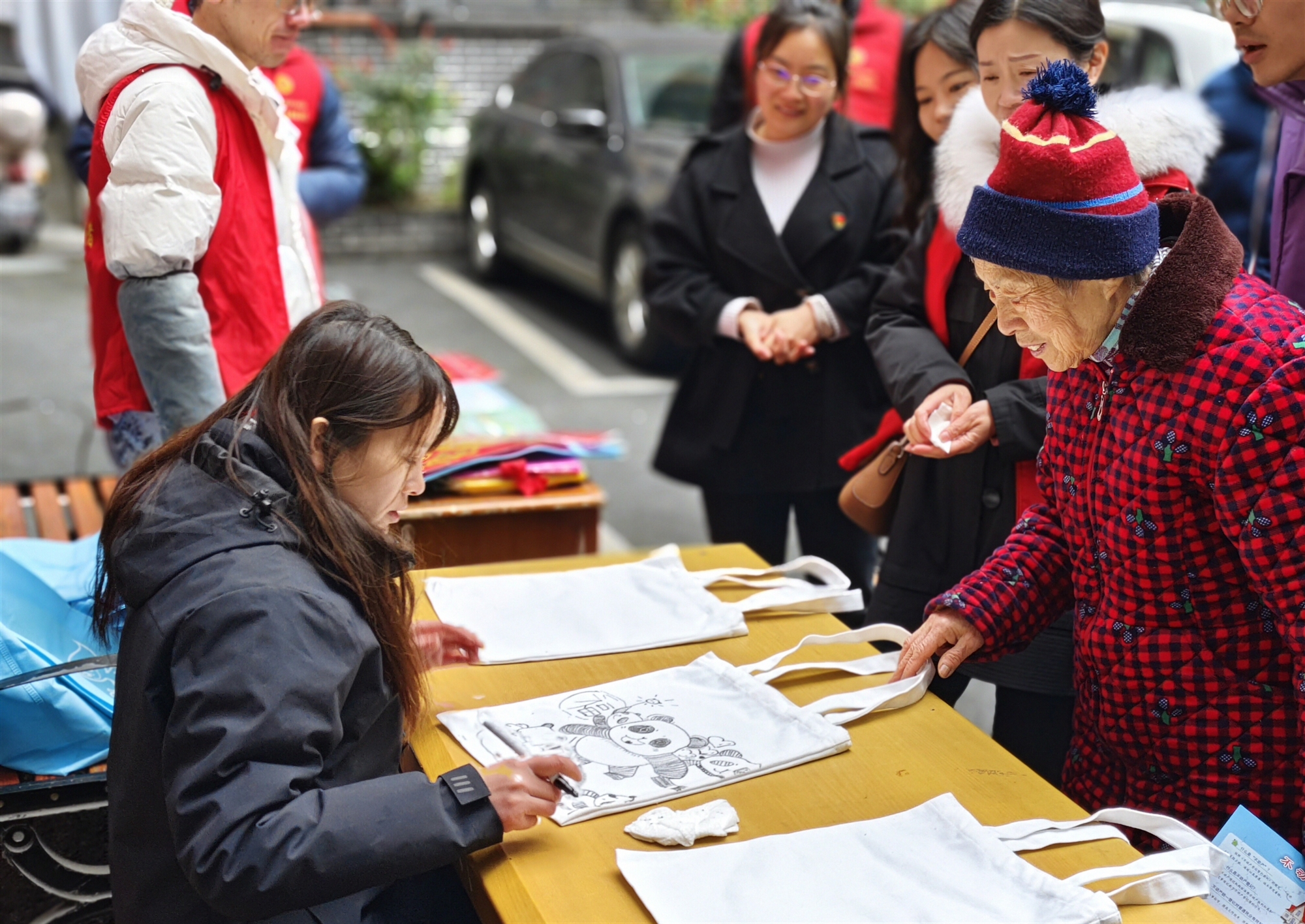 雅安藝悅文化創意有限責任公司黨員代表、市自然資源和規劃局“紅旗幟”志愿服務隊隊員以手繪形式向大院居民宣傳熊貓文化、宣講自然資源法律法規,不斷增強大院居民幸福感和獲得感。