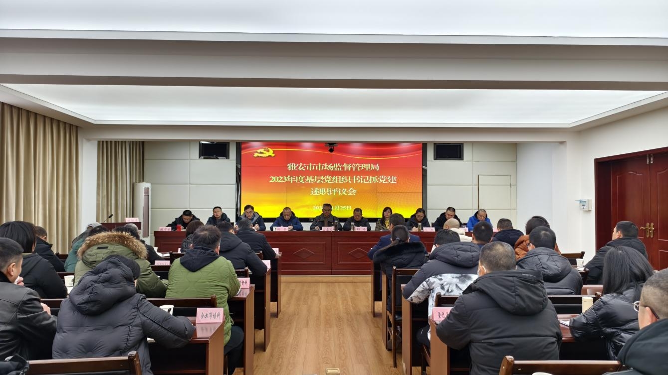 近日,雅安市市場監(jiān)督管理局召開2023年度黨組織書記抓黨建工作述職評議會。會議由局黨組書記、局長王亞文主持。市局班子成員,各黨總支書記、支部書記,機關(guān)全體黨員參加會議。