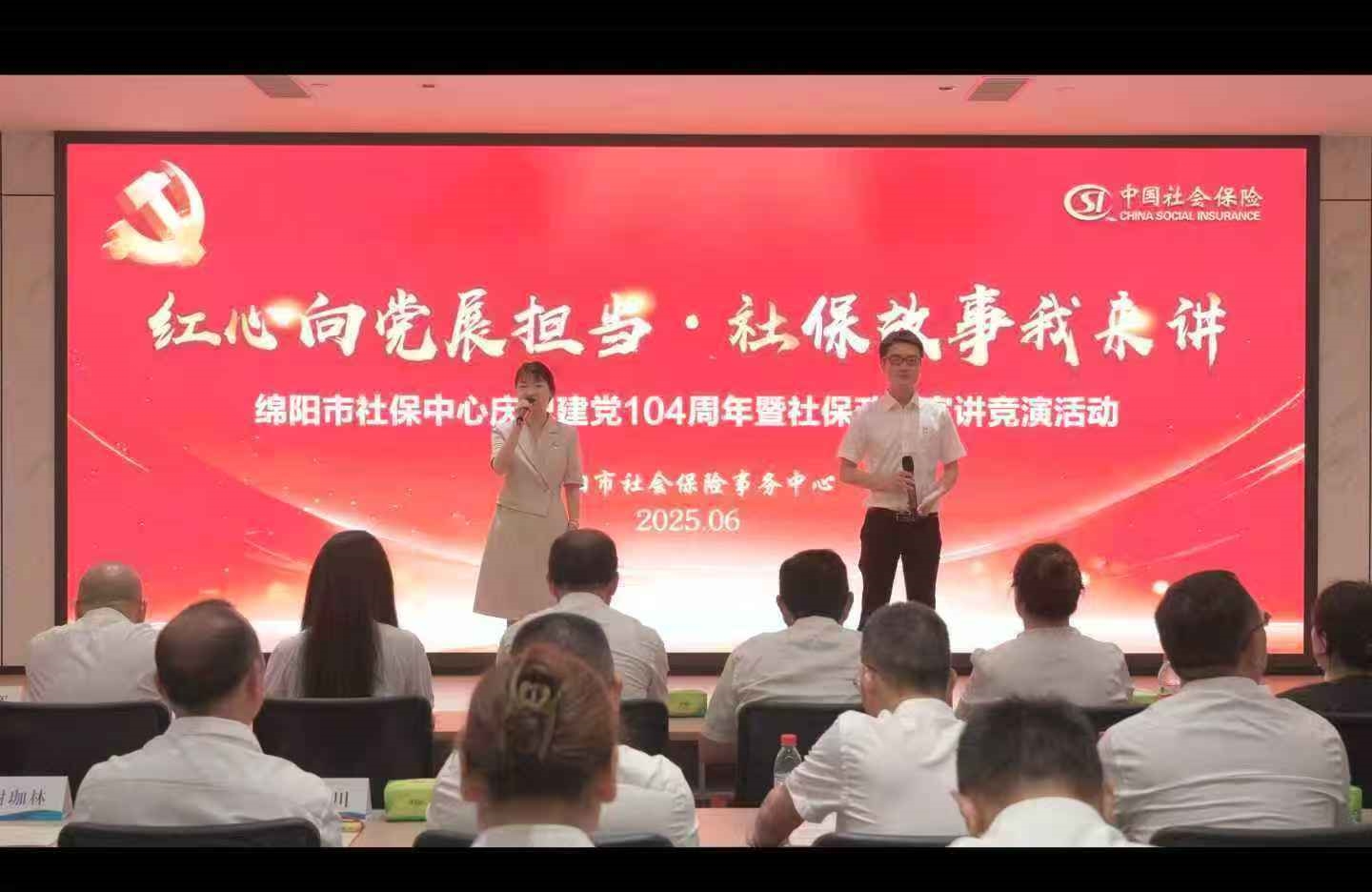 為深入學習黨的二十屆三中全會精神和習近平總書記關于“完善覆蓋全民的社會保障體系”的重要講話精神,推進“三員行動”做深做實,6月27日,綿陽市社會保險事務中心舉辦“紅心向黨展擔當•社保故事我來講” ——慶祝建黨104周年暨社保政策宣講競演活動。各縣區市(園區)社保經辦機構負責人、社保政策宣講員、市社保中心全體黨員干部齊聚一堂,共同聆聽身邊榜樣故事,感受人社服務溫度,汲取擔當作為的奮進力量。
