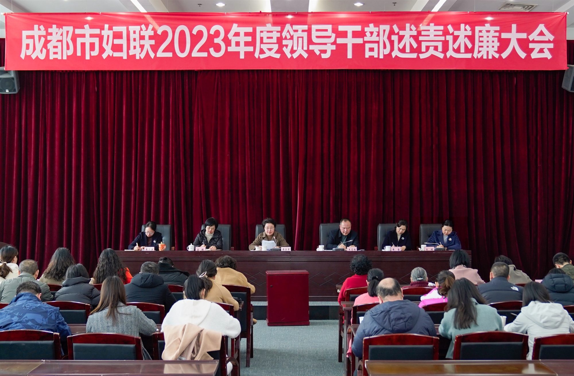 成都市婦聯機關干部職工及下屬事業單位負責人、離退休干部代表參加大會。