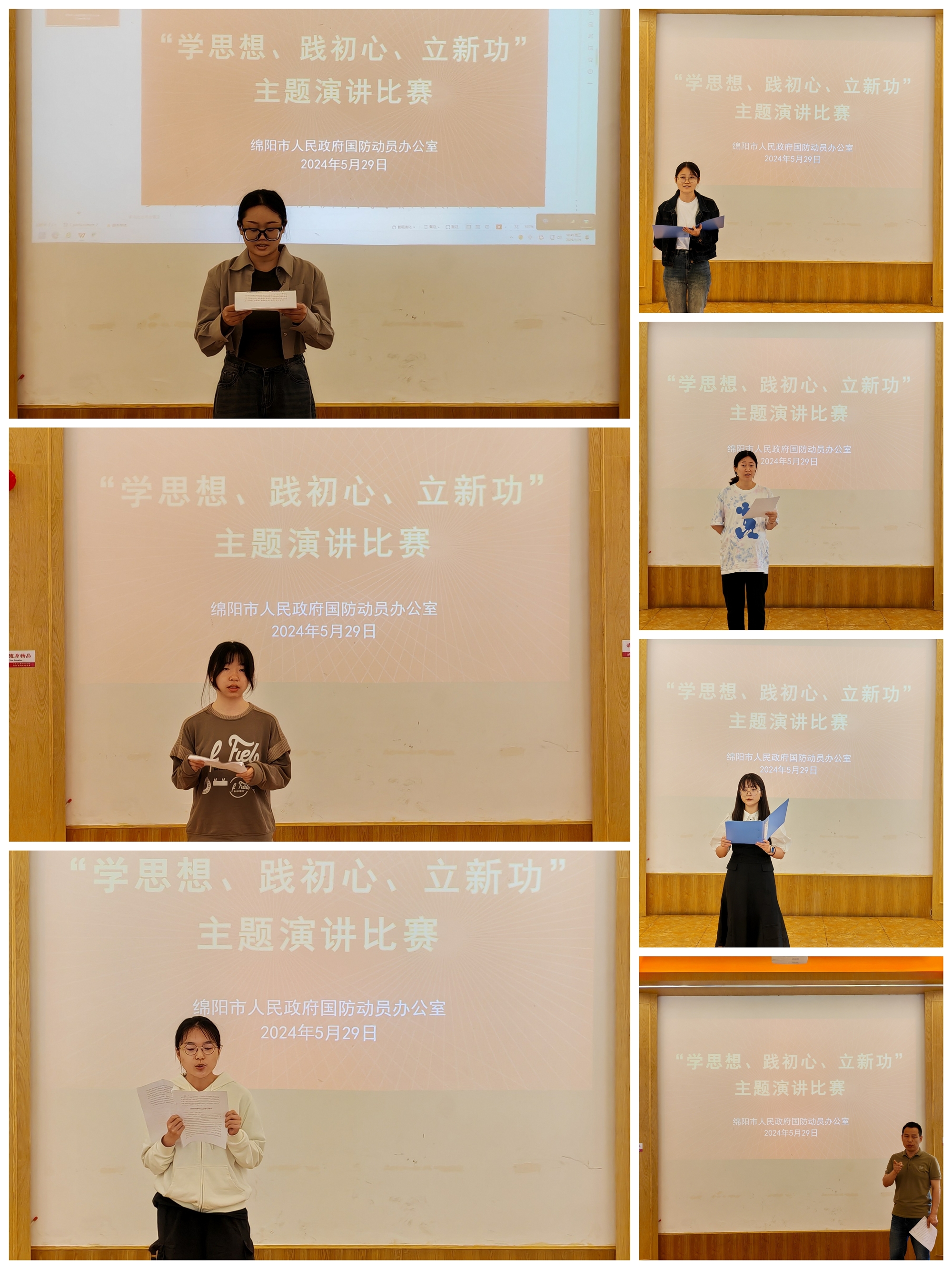 為鞏固拓展主題教育成果,不斷拓展“凝心聚力、鑄盾強防”黨建品牌內涵,引導黨員干部立足本職崗位,建立新功、再創輝煌,5月29日,綿陽市國動辦舉辦了以“學思想、踐初心、立新功”為主題的演講比賽,辦黨組書記、主任段光艷與班子成員出席比賽并擔任評委。