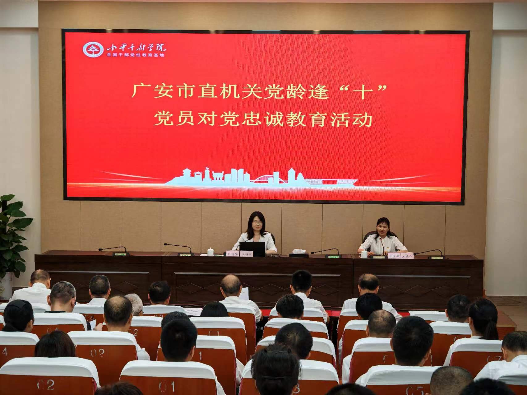 7月1日上午,廣安市委市直機關工委組織開展黨齡逢“十”黨員對黨忠誠教育活動,進一步強化黨員身份意識,加強黨性鍛煉,努力建設政治堅定、素質優良的黨員隊伍。120名市直機關黨齡逢“十”黨員參加活動。