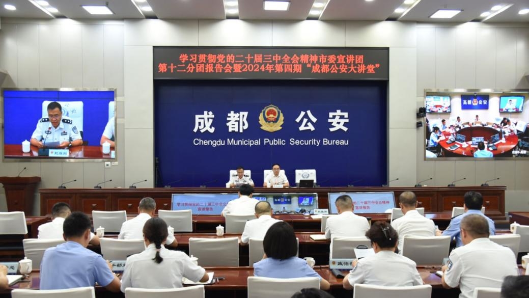 9月4日,學(xué)習(xí)貫徹黨的二十屆三中全會(huì)精神成都市委宣講團(tuán)第十二分團(tuán)報(bào)告會(huì)在成都市公安局舉行,成都市委宣講團(tuán)第十二分團(tuán)(市直機(jī)關(guān)宣講分團(tuán))成員、成都市委黨校(成都行政學(xué)院)市情研究所副所長(zhǎng)、副教授王胡林作宣講報(bào)告。