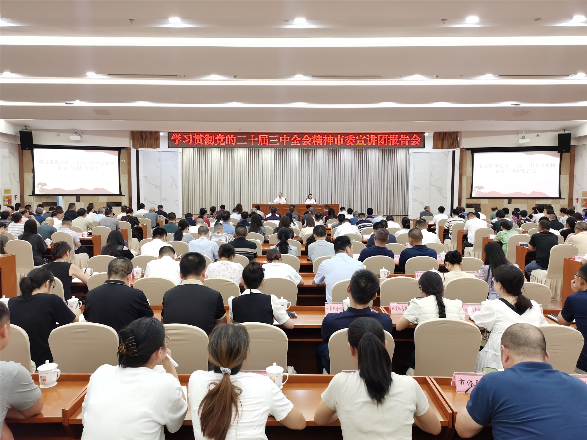 9月4日,學(xué)習(xí)貫徹黨的二十屆三中全會精神綿陽市委宣講團報告會在綿陽長虹技術(shù)中心舉辦,綿陽市委宣講團(市直機關(guān)宣講分團)負(fù)責(zé)人、市委市直機關(guān)工委常務(wù)副書記向斌作宣講報告。綿陽市直機關(guān)黨組織書記、專職副書記、機關(guān)紀(jì)委書記、黨辦主任、黨員代表共計290余人參加報告會。綿陽市委市直機關(guān)工委副書記熊薇主持報告會。