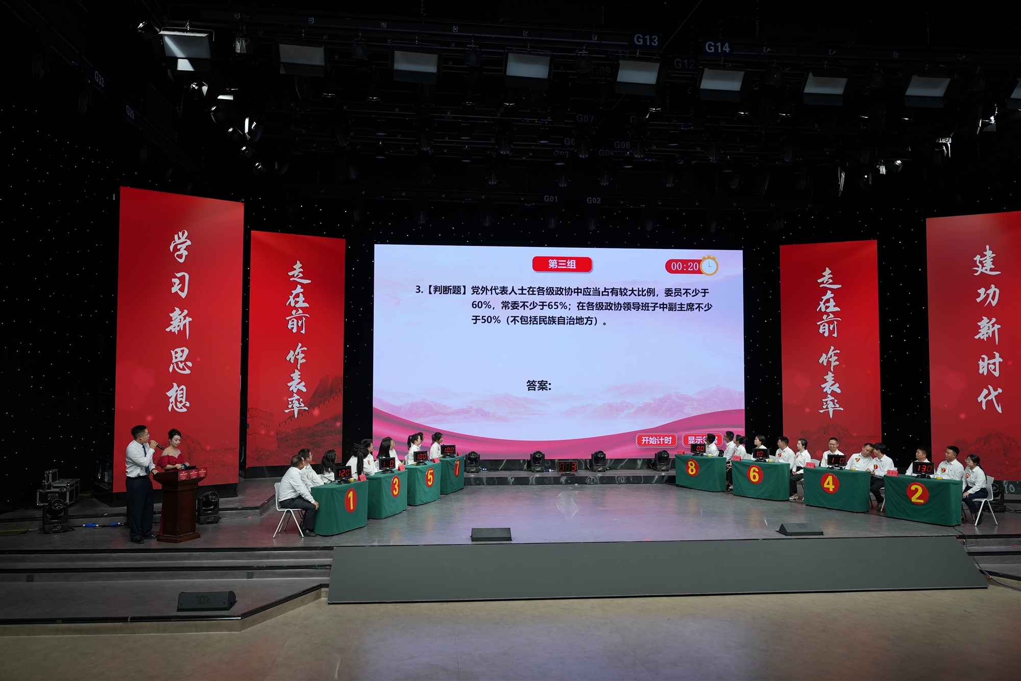 來自市直機關24名選手組成8支代表隊同臺共展風采。競賽設置“必答題”“搶答題”和“風險題”三個環節,題目內容涵蓋黨史、黨建、統戰等業務知識,經過多輪角逐,最終財貿口代表隊獲得一等獎,宣傳口和工業口代表隊獲得二等獎,黨群口、政法口、城交口、政府口、農口代表隊獲得三等獎。