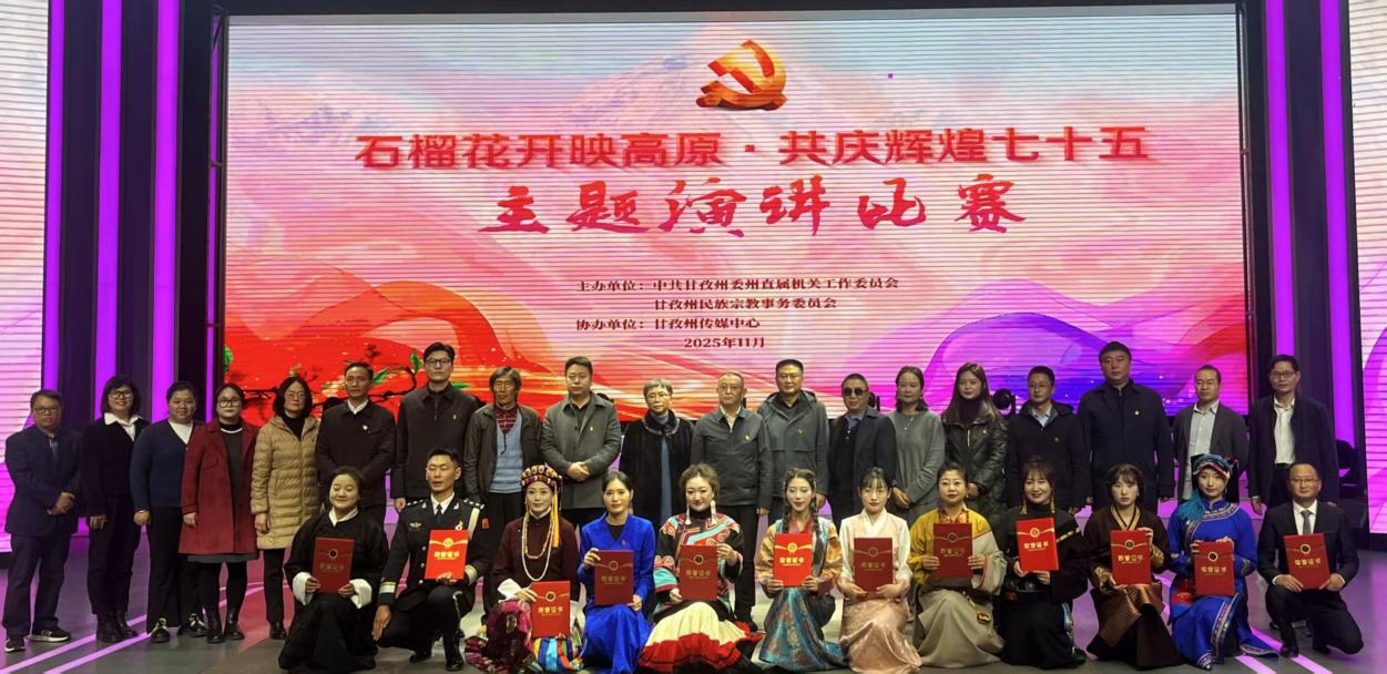 為深入學(xué)習(xí)貫徹習(xí)近平總書記關(guān)于加強(qiáng)和改進(jìn)民族工作的重要思想,慶祝甘孜州建州75周年,11月13日,由甘孜州委州直機(jī)關(guān)工委、州民族宗教事務(wù)委員會(huì)聯(lián)合主辦的“石榴花開(kāi)映高原·共慶輝煌七十五”主題演講比賽在康定舉行。賽事生動(dòng)展現(xiàn)全州民族團(tuán)結(jié)進(jìn)步創(chuàng)建成果,為鑄牢中華民族共同體意識(shí)注入鮮活力量。