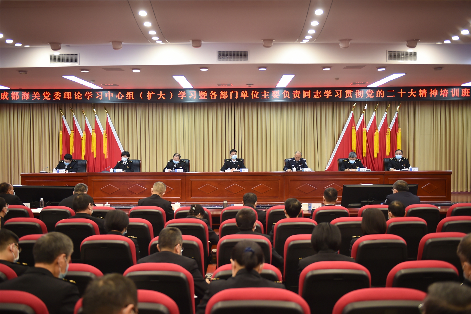 11月23日至25日,成都海關(guān)舉辦黨委理論學(xué)習(xí)中心組(擴(kuò)大)學(xué)習(xí)暨各部門單位主要負(fù)責(zé)同志學(xué)習(xí)宣傳貫徹黨的二十大精神培訓(xùn)班。會(huì)議通過學(xué)習(xí)原文、聽取省委宣講團(tuán)成員講座、先進(jìn)典型代表交流、分組討論、代表發(fā)言等形式,全面學(xué)習(xí)、全面把握、全面落實(shí)黨的二十大精神,推動(dòng)黨的二十大精神落地落實(shí)。