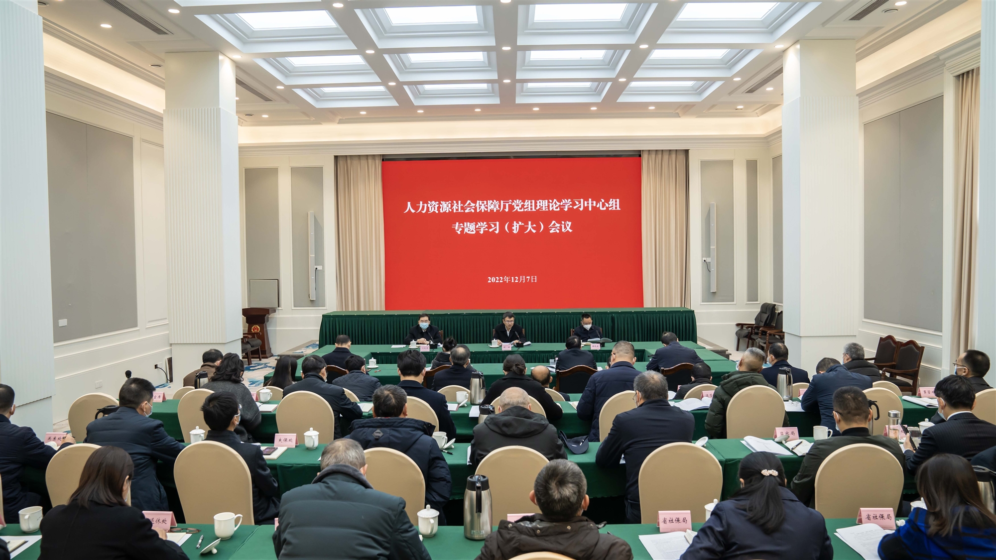 12月7日,人力資源社會保障廳召開黨組理論學習中心組專題學習(擴大)會議,集中學習黨的二十大精神和省委十二屆二次全會精神。廳黨組書記、廳長胡斌主持會議并講話,中心組成員圍繞學習主題,結合工作實際交流心得體會。