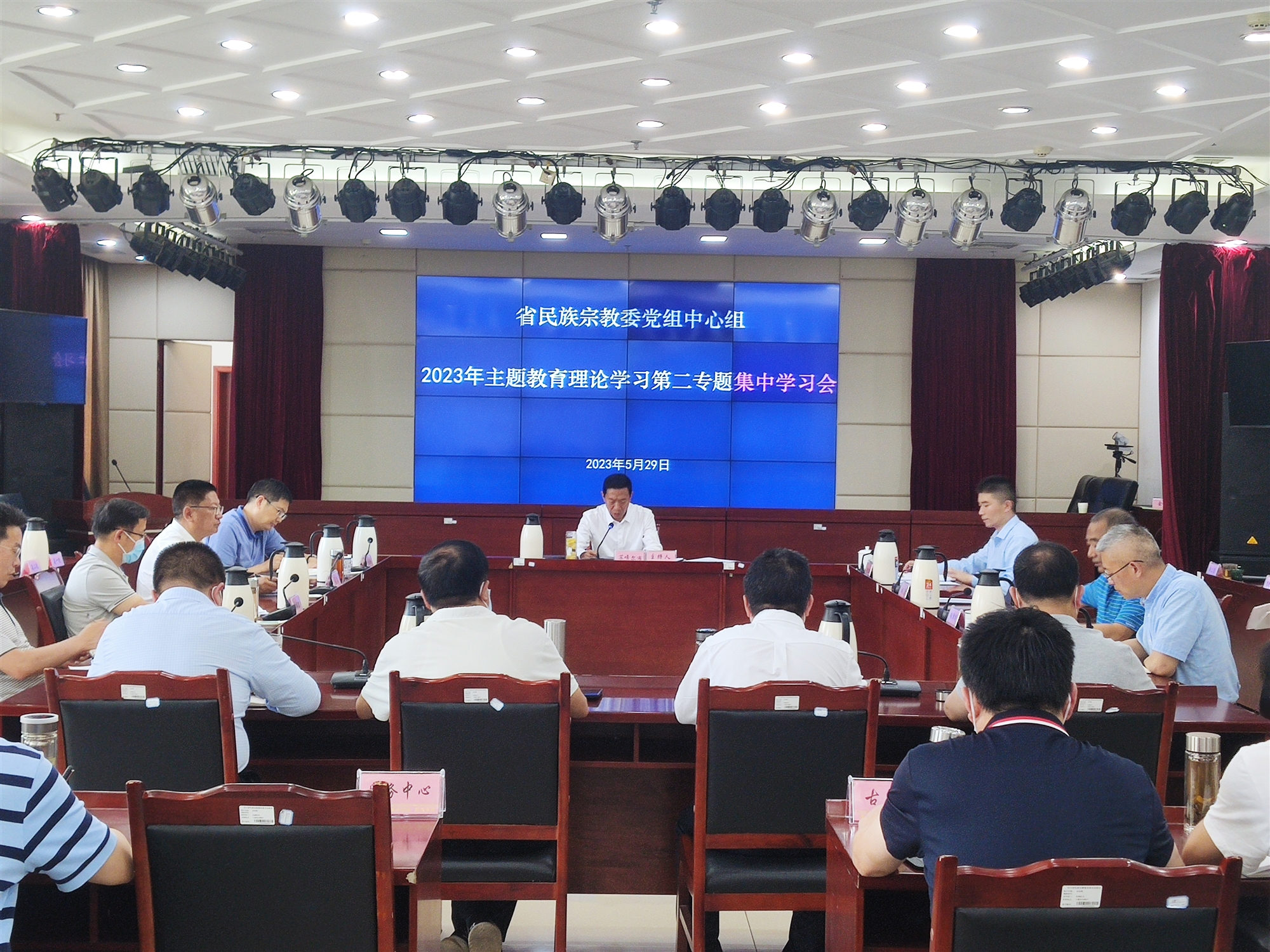 為深入學習貫徹習近平新時代中國特色社會主義思想,按照省委統一部署,結合委主題教育工作安排,5月29日,省民族宗教委召開黨組中心組2023年主題教育理論學習第二專題集中學習會,深入學習習近平新時代中國特色社會主義思想的世界觀、方法論和貫穿其中的立場觀點方法,不斷提高推動高質量發展本領。本次學習采取個人自學和集中學習相結合的方式進行,委黨組書記、主任蘇嘎爾布主持會議并講話。