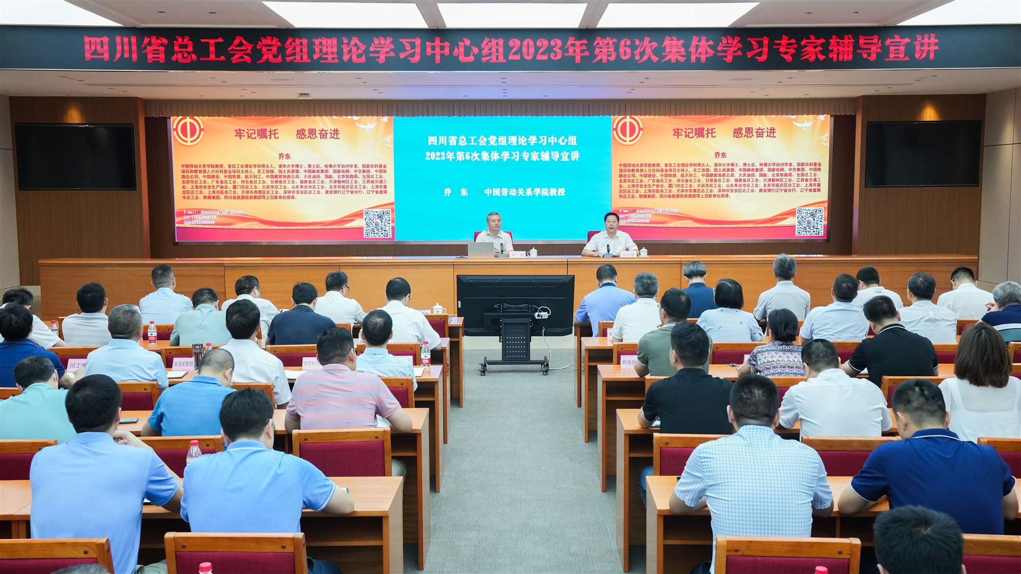 會議邀請中國勞動關系學院教授喬東作了題為《牢記囑托 感恩奮進》專題輔導。喬東教授圍繞習近平總書記對四川工作的系列重要指示精神,習近平總書記關于工人階級和工會工作的重要論述和指示批示精神,以及實踐路徑三個方面展開宣講,緊密結合四川工會工作實際,既有理論上的分析解讀,又有實踐上的具體闡釋,內容豐富翔實,解讀精準透徹,為進一步做好四川工會工作提供了有力指導。