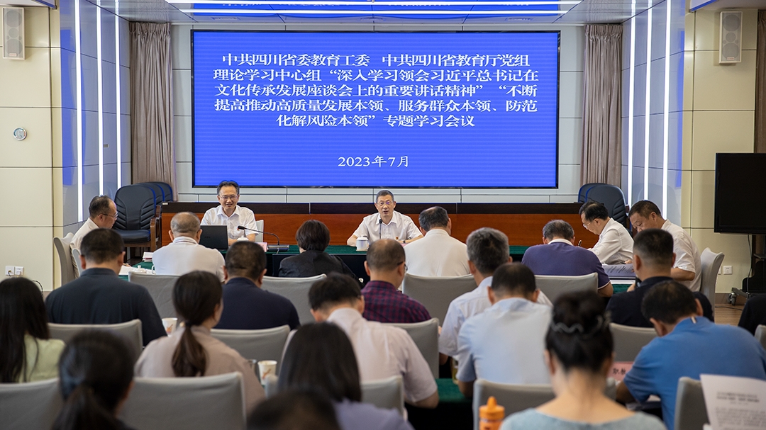 7月20日,省委教育工委、教育廳黨組理論學習中心組召開專題學習會。會議強調(diào),要深入學習習近平總書記在文化傳承發(fā)展座談會上的重要講話精神特別是關(guān)于文化建設(shè)的新思想新觀點新論斷,深刻領(lǐng)會習近平總書記關(guān)于“不斷提高推動高質(zhì)量發(fā)展本領(lǐng)、服務(wù)群眾本領(lǐng)、防范化解風險本領(lǐng)”的重要指示精神,切實提升履職盡責的能力水平,為加快建設(shè)教育強省、辦好人民滿意的教育提供堅強保證。