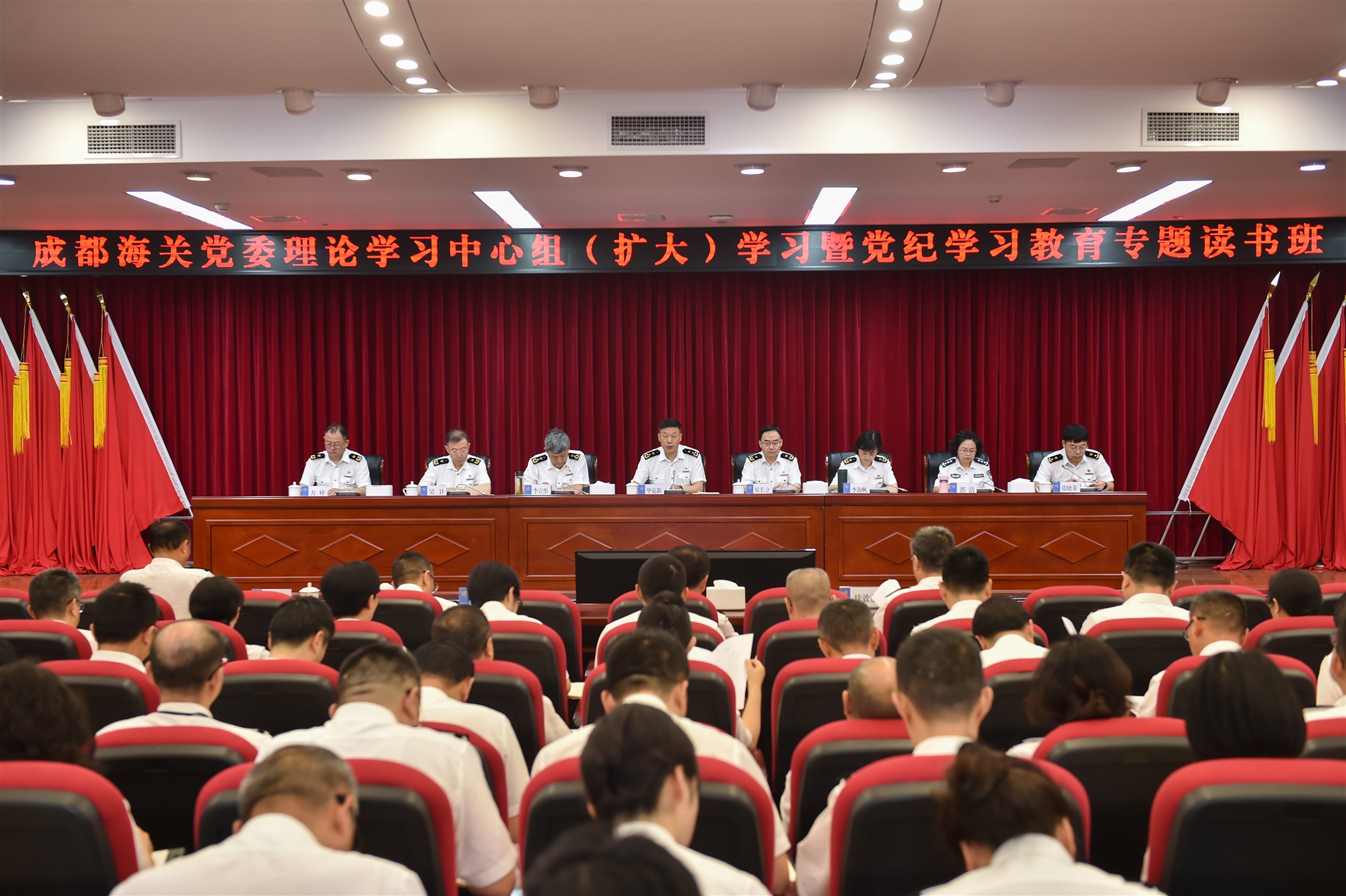 5月11日——15日,成都海關舉辦黨委理論學習中心組(擴大)學習暨黨紀學習教育專題讀書班。本次讀書班為期5天,讀書班學員通過集中學習、個人自學、專題輔導、警示教育、實地研學、專題研討相結合的方式,聚焦新修訂的《中國共產黨紀律處分條例》,深入學習領會《習近平關于全面從嚴治黨論述摘編》《論黨的自我革命》,習近平總書記在二十屆中央紀委三次全會上的重要講話精神,黨章黨規黨紀以及海關全面從嚴治黨制度規定等內容。