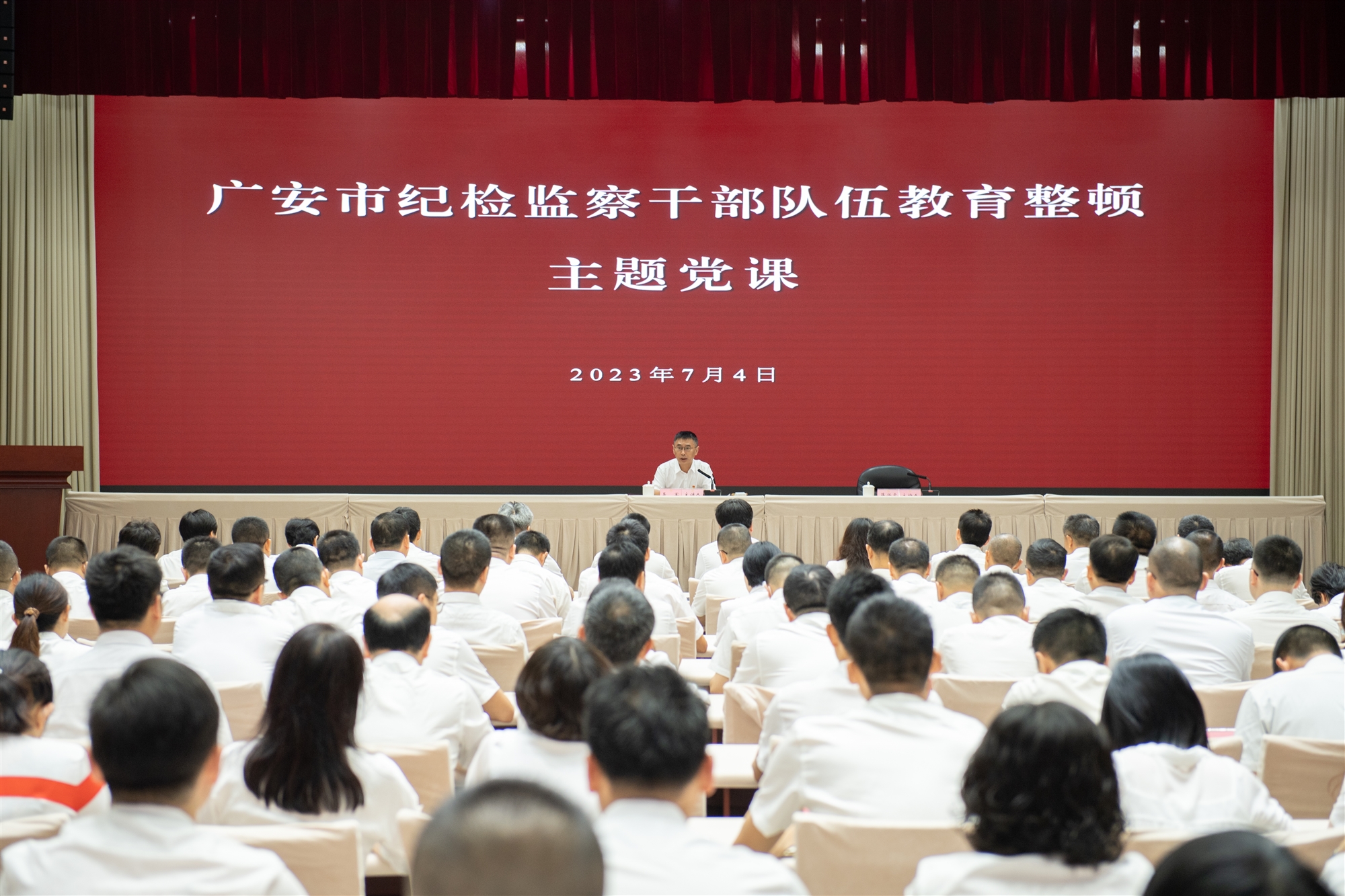 7月4日上午,廣安市紀檢監察干部隊伍教育整頓主題黨課舉行。廣安市委常委、市紀委書記、市監委主任聶軍以“賡續紅色血脈,傳承優良作風,做讓黨放心、人民信賴的忠誠衛士”為主題作黨課報告。