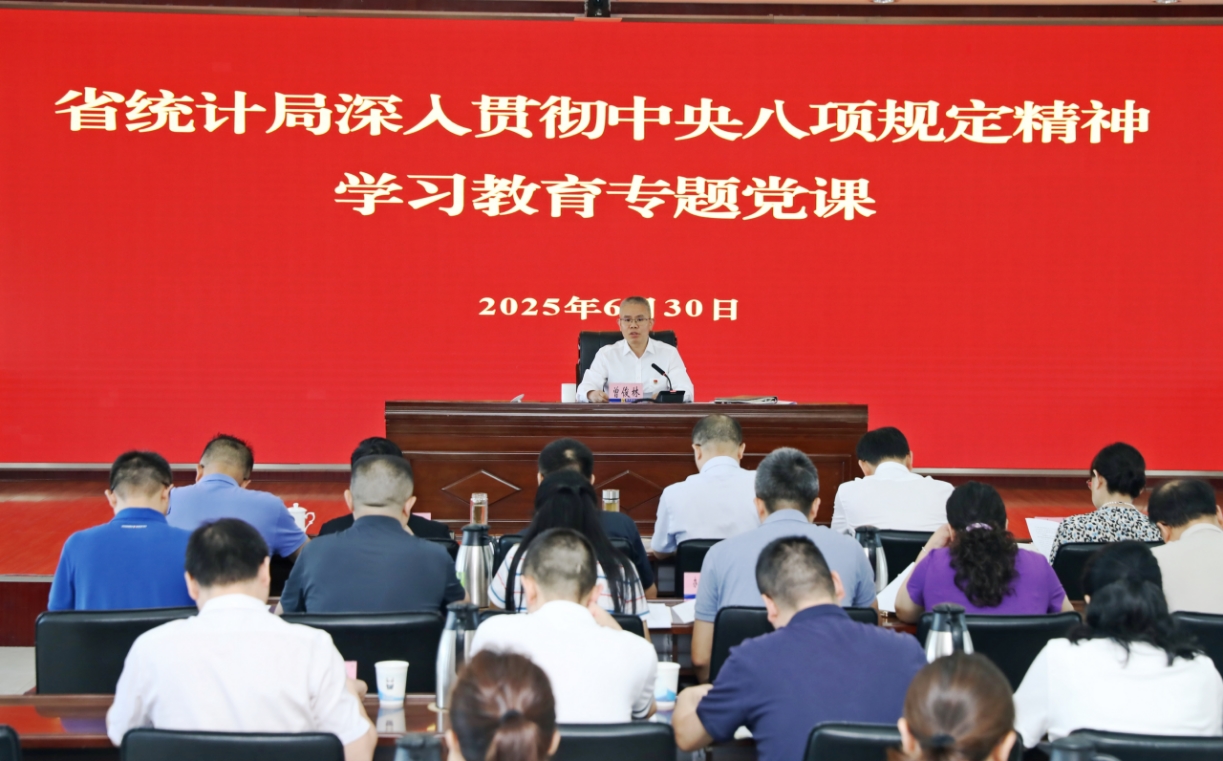 根據中央、省委關于深入貫徹中央八項規定精神學習教育的部署安排,6月30日,省統計局黨組書記、局長曾俊林以“深入貫徹中央八項規定精神 以作風建設新成效推動四川統計事業高質量發展”為題,為全局黨員干部講專題黨課。