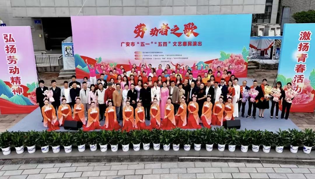 4月25日,“勞動者之歌”—— 廣安市“五一”“五四”文藝惠民演出在思源廣場舉行。活動由四川省新文藝組織發展聯合會指導,廣安市總工會、團市委、市文聯聯合主辦,以多元藝術形式展現勞動者風采與青年擔當,吸引眾多市民駐足觀看。