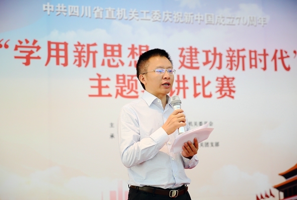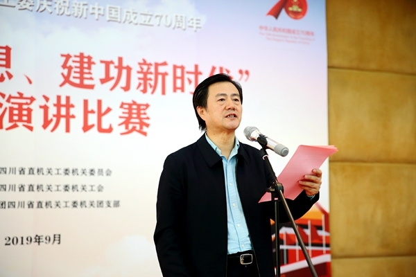 為進一步引導(dǎo)和激勵全委黨員干部特別是青年干部深刻認(rèn)識習(xí)近平新時代中國特色社會主義思想的重要意義,自覺擔(dān)當(dāng)作為、砥礪奮進,為機關(guān)黨建事業(yè)貢獻智慧和力量,按照省直機關(guān)工委慶祝新中國成立70周年系列活動安排,9月25日下午,省直機關(guān)工委舉辦了 “學(xué)用新思想、建功新時代”主題演講比賽。工委副書記楊明受常務(wù)副書記王承先委托致辭,機關(guān)黨委書記唐功江主持活動。