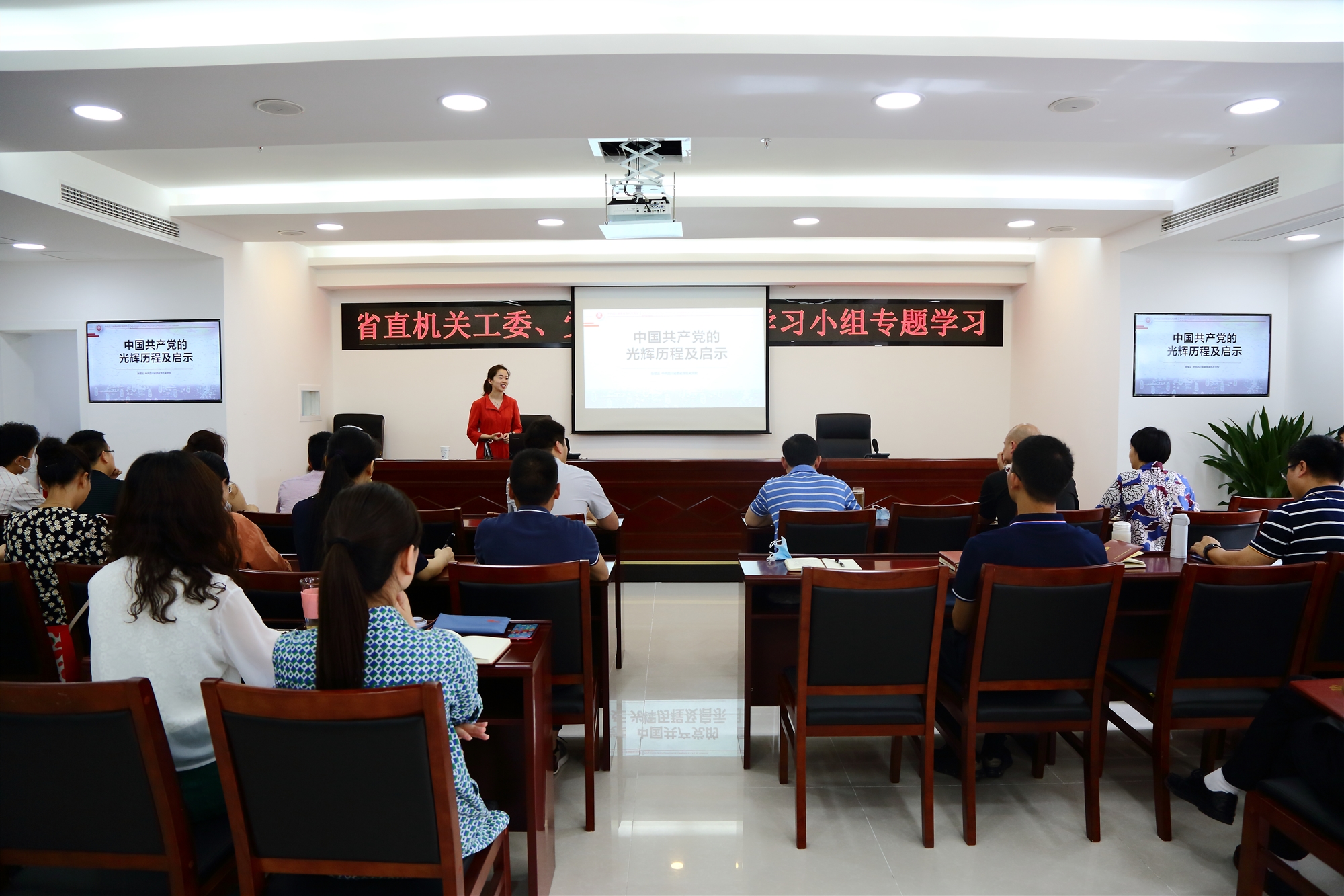 為做實做細機關青年理論學習工作,根據省直機關工委青年理論學習小組計劃安排,6月9日上午,省直機關工委、省委省直機關黨校青年理論學習小組開展了聯合專題學習。省委省直機關黨校哲學社會學教研部張瑩云老師以《中國共產黨的光輝歷程及啟示》為題,深入淺出的為工委黨員突擊隊、青年理論學習小組、省直機關黨校青年理論學習小組成員作了一堂精彩講座。省直機關工委辦公室主任、突擊隊隊長、青年理論學習小組組長何成華最后作總結講話。