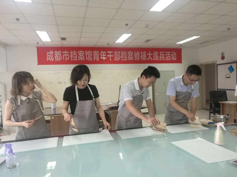 去年以來,成都市檔案館深入貫徹落實中央和國家機關、省直機關、市直機關黨的建設工作會議精神,著力抓好青年黨員干部理論學習、業務培訓,廣泛開展青年干部檔案整理大練兵活動,讓近幾年新進館人員對檔案整理全流程進行系統學習,有力促進成都檔案工作有序發展。此次檔案修裱大練兵活動是檔案整理大練兵活動的繼承和延續,活動形式多樣,內容豐富,涉及檔案修裱理論、溫濕度及蟲霉對檔案的影響、修裱漿糊調制、檔案修裱實際操作等業務知識。