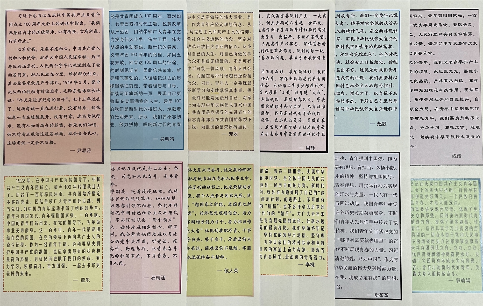 青年干部們從“新時代青年如何肩負起歷史使命”“怎樣涵養廉潔自律的道德修為”“堅定理想信念”“發揮青年奮斗熱情”等主題出發,聯系黨的百年奮斗史、共青團發展的光輝歷程,結合自身工作實際,分享了學習感悟。大家紛紛表示,習近平總書記在建團100周年大會上的重要講話高屋建瓴、視野宏大,將激勵財政青年干部們立足崗位、苦練本領、奮勇爭先,為新時代治蜀興川再上新臺階貢獻蓬勃的青春力量。
