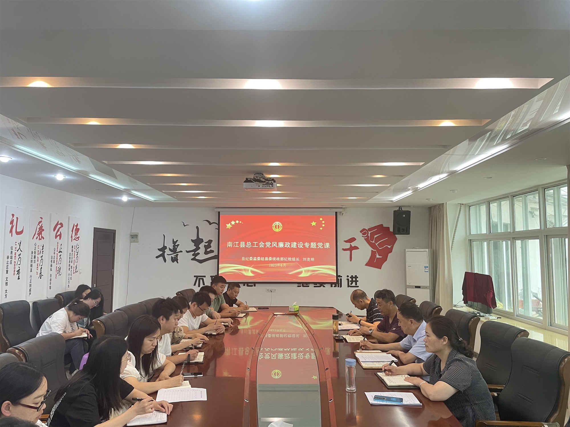 為進一步強化黨風廉政建設,加強年輕干部的培養管理,持續深化黨員干部廉潔自律、崗位責任意識,6月28日,巴中市南江縣總工會組織開展“紀檢組長講廉政黨課”暨推進“青廉”干部家訪活動。縣總工會黨組書記、常務副主席康建國主持。