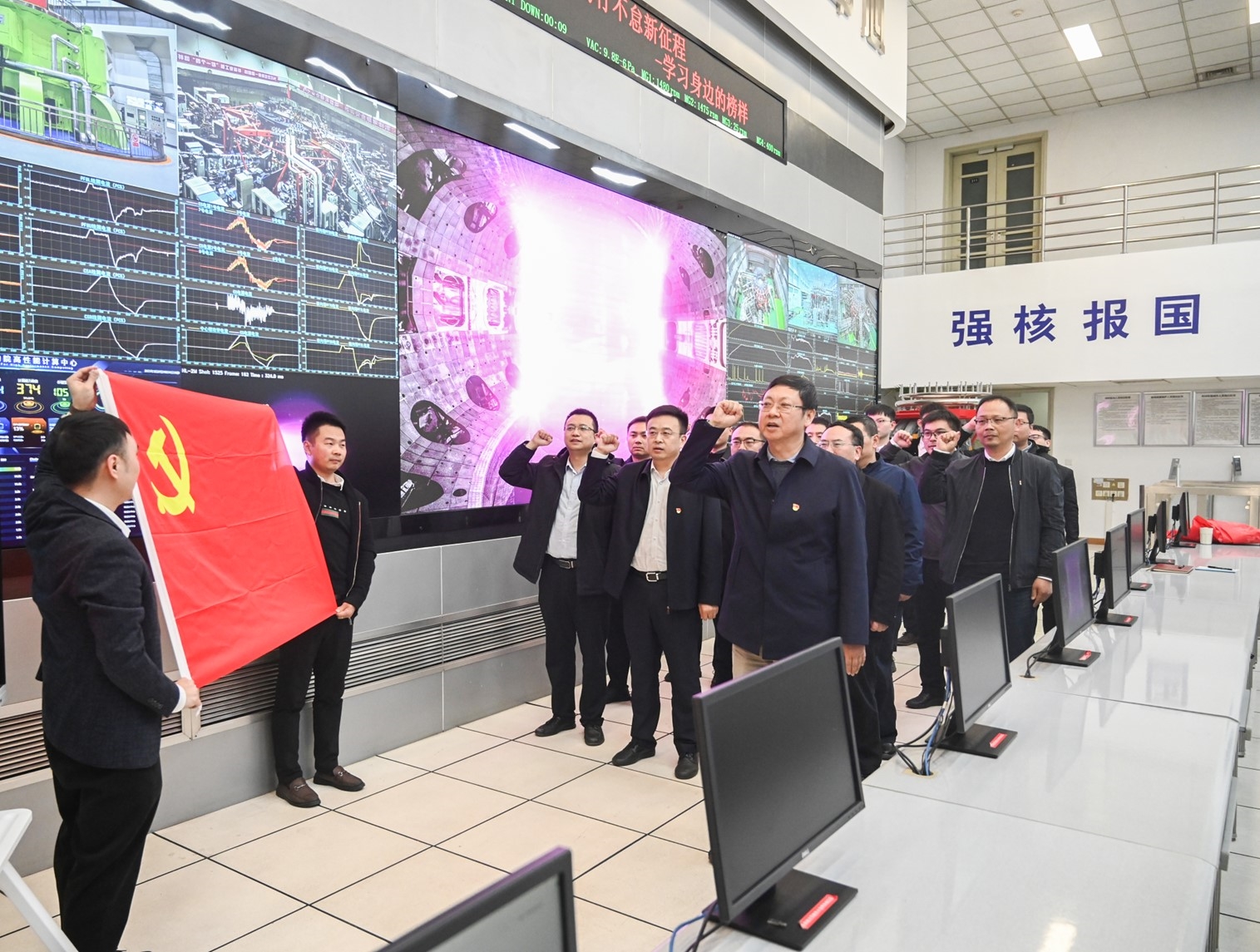 近日,省委軍民融合辦機(jī)關(guān)產(chǎn)業(yè)推進(jìn)一處黨支部和核工業(yè)西南物理研究院計(jì)劃項(xiàng)目黨支部聯(lián)合開(kāi)展“踔厲奮發(fā)新時(shí)代 篤行不怠新征程——學(xué)習(xí)身邊的榜樣”主題黨日活動(dòng),省委軍民融合辦副主任施遐同志以普通黨員身份參加活動(dòng)。雙方黨員在中國(guó)環(huán)流器指揮控制中心,面對(duì)黨旗,一起重溫入黨誓詞,感悟初心使命。